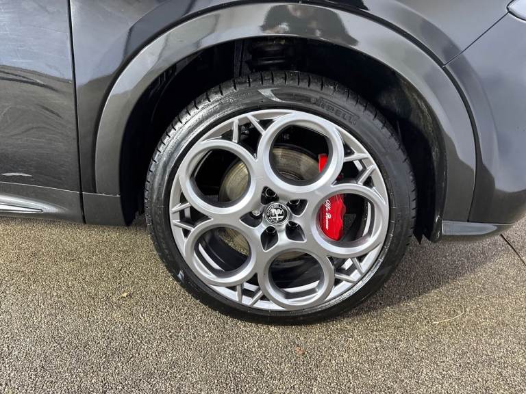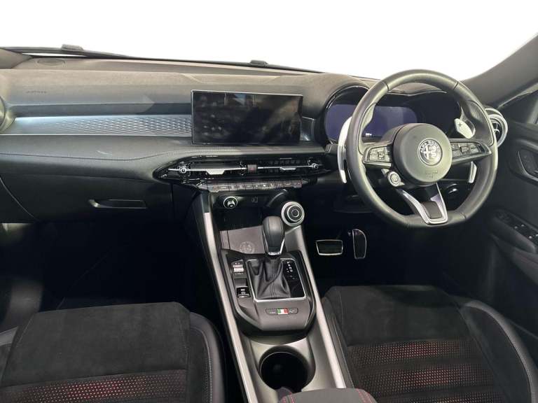 ..Alfa connect box, Alfa connect services, Alfa dna with esc off (3 modes + esc off), Apple car play/Android Auto, Drowsy driver detection, e-Call (emergency call), Forward collision warning, Full tft instrument cluster - 12.3'', Intelligent adaptive cruise control, Intelligent speed assist, Lane support system, PAS, Passive / keyless entry (front doors), Power liftgate, Quick guide in english, Speed limiting device, Traffic sign recognition (w/navigation), Warranty handbook uk, Wireless charging pad, 10.25'' radio touchscreen, usb, bluetooth audio streaming, voice controls with navigation, DAB digital audio broadcast, 4 Interior puddle lights, Alfa scudetto with dark finishing, Auto headlamps with dusk sensor, Auto high beam, Auto wipers with rain sensor, Auto-dimming rear internal mirror, Black painted mirror caps, Body colour door handles, Chrome finishing tonale badge, Dark finishing veloce badge, Dark miron body kit with matt side and front inserts, Dual chromed exhaust tips, Electric exterior mirrors (heated), Electrical-folding exterior mirrors, Front and rear power windows with auto up/down and antipinch, Full LED rear lamps, Gloss black painted DLO, Gloss black painted window surround, LED blade stop light, LED cornering projector light, LED license plate light, Matrix full led headlamps with adaptive system and fog light function, Phev exterior badging, Privacy glass, Rear side wing doors, Rear wiper, Roof, hood and exterior mirrors protection, Scudetto bezel dark miron, Shark fin antenna, U shaped LED blades DRL signature and dynamic turn indicator, Veloce badges on front fenders, Veloce front grille, Welcome/leaving lighting, 12v plugs in the front and in trunk, 4 way electric driver lumbar support, 4 Ways electric driver only lumbar adjustment, 60/40 Rear seats with ski pass, Alcantara dashboard with red stitching, Aluminium door sills, Aluminium shift paddles on steering column, Aluminium sports pedals, Black ceiling and pillars, Bottle storage 1l on door panel, Dual zone air conditioning with aqs (with rear airvents), Front armrest (integrated in the central tunnel), Front headrests, Front usb plug type a + c (charge + data), Front/rear floor mats, Mono colour ambient light (included in domelamp), Overhead console with domelamp led and switches, Rear air vents, Rear central armrest and 3 headrests, Rear usb plug type a + c (charge), Seat belt height adjustment, Single front passenger seat, Softskin ip dashboard and upper door panels, Sport