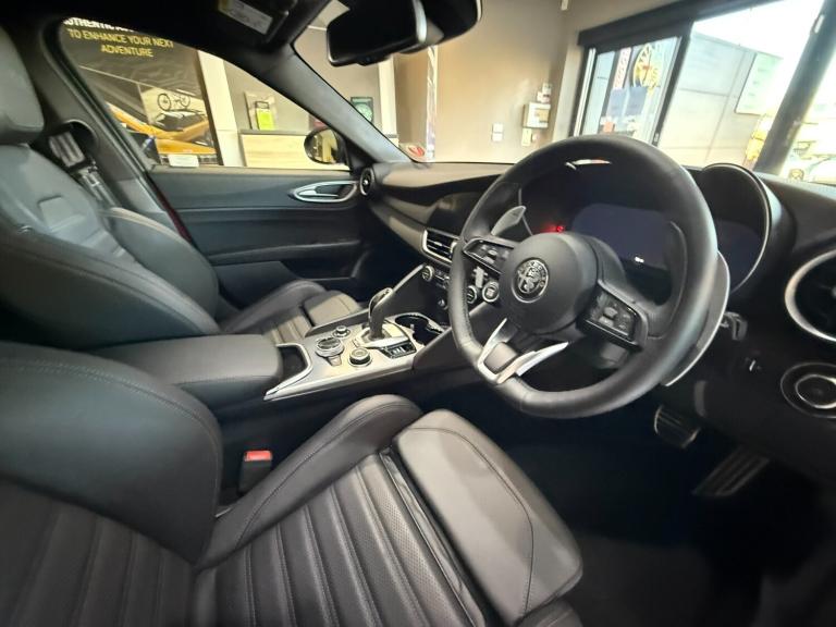 This 2024 Alfa Romeo Giulia T Sprint is an exceptional example, boasting an incredibly low mileage of just 13 miles, making it practically new. This Euro 6 compliant model features a potent 2.0 litre petrol engine, delivering exhilarating performance. Convenience is key with this Sprint trim, offering features such as front and rear parking sensors with parking assistance, a wireless charging pad for your devices, and keyless entry with passive entry for effortless access. The automatic dusk sensor ensures your headlights are always on when needed, adding to the sophisticated driving experience.Experience the thrill of rapid acceleration with the Giulia T Sprint, capable of reaching 0-62mph in a remarkable 5.7 seconds. This impressive speed demonstrates how this Alfa Romeo outperforms many other vehicles in its class. The combination of its sporty design, advanced technology, and outstanding performance makes this Giulia T Sprint a truly desirable car for any enthusiast..Leather Seats / Alloy Upgrade.12.3'' Full TFT instrument cluster, Active blind spot assist, Active cruise control, Adaptation for cold countries, Alfa connect box, Alfa connected services, Alfa multi touch 3D Nav 8.8'' Infotainment system (radio, 3D Nav, MP3, aux-in, bluetooth), Apple car play/Android Auto, DNA unlatched, Drive mode selector, Driver attention alert system, Electrically operated tailgate, European maps, Forward collision warning, Front and rear parking sensors, Lane departure warning system, Lane keep assist, PAS, Rear backup camera with dynamic grid lines, Stop/start system, TMC Pro, Traffic sign recognition, Trip computer, Wireless charging pad, High efficiency alternator 180A, Black speaker surround system, Digital Audio Broadcast radio-DAB, Rear USB port, Steering wheel mounted audio controls, USB and Aux in armrest, USB in front centre console, Adjustable headlights, Alfa romeo assistance sticker, Auto dimming electrochrome door mirrors, Auto high beam, Badge sprint, Belly pan, Dark finish exhaust finisher, Dark finish Giulia badge, Dark finish rear lights, Dark finish V grille, Dual exhaust pipes, Dusk sensor, Electrically adjustable and folding door mirrors, Electrochrome rear view mirror, Exterior door handle courtesy lights, Full LED matrix trilobe headlamps, Heated washer jets, LED tail and brake lights, Rain sensor, Rear boot, Rear side wing doors, Sports front bumper, Transportation protection cover, U shaped LED blades DRL signature and dynamic turn indicator,