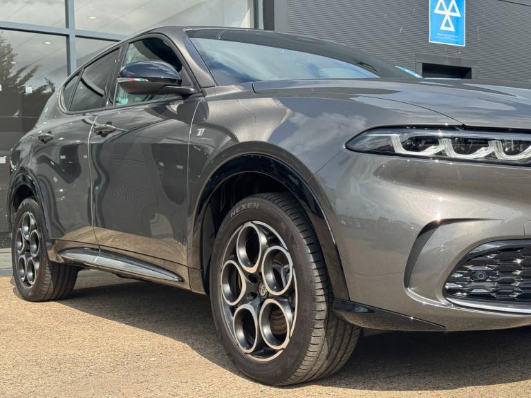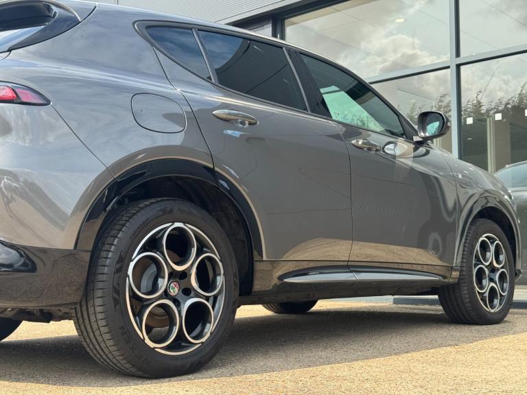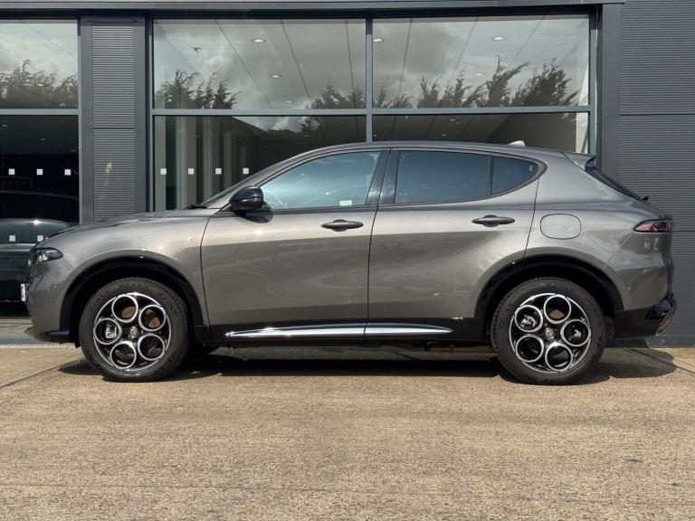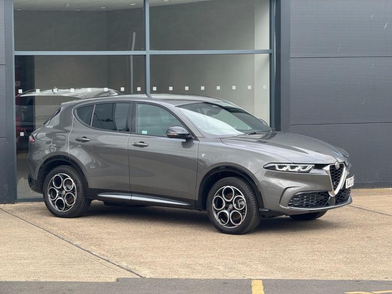 Alfa Romeo Tonale Hatchback Ti 1.3 PHEV in Vesuvio Grey - The Future of Driving with Italian Flair Step into the future of driving with the Alfa Romeo Tonale Hatchback Ti 1.3 PHEV in sophisticated Vesuvio Grey. This plug-in hybrid electric vehicle (PHEV) represents the perfect fusion of Alfa Romeos iconic design, performance, and advanced hybrid technology, delivering an efficient yet exhilarating driving experience. Key Features: Engine & Performance: The Tonale Ti is powered by a 1.3-litre turbocharged engine combined with an electric motor, producing a total output of 275bhp. This innovative powertrain offers the perfect blend of performance and efficiency, ensuring rapid acceleration and smooth transitions between power sources. Hybrid Technology: Enjoy the flexibility of electric-only driving for shorter trips and the reassurance of a petrol engine for longer journeys. The PHEV system includes regenerative braking, which recovers energy during deceleration and braking, enhancing overall efficiency. Design & Exterior: The Vesuvio Grey finish accentuates the Tonales sleek, modern design. Signature elements include the iconic V-shaped grille, sharp LED headlights, and aerodynamic lines that convey both elegance and sportiness. The stylish alloy wheels and bold Alfa Romeo badging complete its distinctive look. Interior Comfort: Inside, the Tonale Ti offers a luxurious and spacious cabin crafted with premium materials. Leather-trimmed seats, a driver-centric cockpit, and ample legroom ensure comfort for all occupants. The versatile interior provides generous cargo space, making it ideal for daily commutes and weekend adventures. Technology & Connectivity: Stay connected and entertained with the latest in-car technology, featuring a 10.25-inch touchscreen infotainment system, Apple CarPlay, Android Auto, and a premium sound system. Advanced navigation and Alfa Connect services provide real-time information and remote access to your vehicles features. Safety & Assistance: Drive with confidence thanks to a suite of advanced safety features. The Tonale Ti includes adaptive cruise control, lane-keeping assist, forward collision warning, and automatic emergency braking, ensuring peace of mind on every journey. Additional Highlights: Alfa DNA Drive Mode Selector: Tailor your driving experience with Dynamic, Natural, and Advanced Efficiency modes, allowing you to adapt the cars performance to your preferences and driving conditions. E-Save Mode: Prioritize
