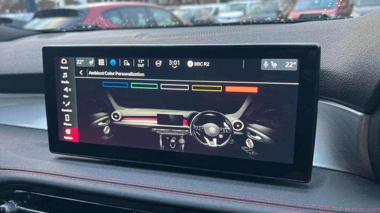 10.25in Radio Touchscreen12V PlugsAlfa Connect ServicesApple CarPlay and Android AutoDAB RadioFront USB - Plug Type A and C - Charge and DataHarman Kardon Sound SystemRear USB PortWireless Charging PadAdaptive Cruise ControlAlfa DNA with ESC OffBack Up Camera with Dynamic LinesDrowsy Driver DetectionForward Collision Warning - FCWFront and Rear Parking SensorsLane Support SystemRear Seat Reminder AlertTPMS - Tyre Pressure Monitoring SystemTraffic Sign Recognition20in Alloy Wheels - Grey FinishBlack and White Alfa Romeo Logo Centre Wheel CapsBlack Painted Mirror CapsBody Colour Painted Body Kit with Dark Miron Side and Front Inserts and SkidplateBody Coloured Door HandlesBrake Calipers - RedCapless Fuel FillerDoor Mirrors - Electrically Adjustable - Folding and HeatedDual Exhaust Tips - Cold Exhaust - Chrome FinishingFix and Go Puncture Repair KitFront and Rear Power Windows with Auto Up-Down and Anti-PinchHeated Washer NozzlesLED License Plate LightPHEV Exterior BadgePrivacy GlassRear Spoiler - Body ColourScudetto Bezel Dark MironTonale Badge - Chrome FinishWindow Surrounds - Gloss BlackAutomatic Headlamps - Dusk SensorAutomatic High Beam SystemInterior Puddle LightsLED Rear LightsMatrix Full LED Headlamps with Adaptive System - LED DRL and Fog Light Function4 Way Electric Lumbar Adjustment - Driver and Passenger60-40 Split Folding Rear SeatsAlfa Connect BoxAluminium Door SillsAluminium PedalsAluminium Shift Paddles on Steering ColumnAmbient Lighting and Backlit Film-Carbon LookArmrest - FrontAuto Wipers with Rain SensorAuto-Dimming Rear View MirrorBlack Ceiling and PillarsBottle StorageDual-Zone Automatic Air ConditioningElectric - 8 Way Adjustable - Driver and Passenger SeatFront and Rear FloormatsFull TFT Instrument Cluster - 12.3inHands Free Power LiftgateHeated Front SeatsHeated Steering WheelKeyless-GoMono-Colour Ambient LightOverhead Console - Dome Lamp LED and SwitchesPHEV Infotainment Specific Graphics and FeaturesPower LiftgateRear Air VentsRear Central Armrest and 3 HeadrestsSeatbelt Height AdjustmentSport Leather Steering Wheel with Start ButtonSunvisor Mirror with Light - Driver and PassengerAlfa Dual Stage Valve Suspension - DSVIntelligent Speed Assist - ISAMode 2 Charging Cable RHDMode 3 Charge CablePower SteeringPTC HeaterSpeed Limiting Device6 AirbagsABS - Anti Lock Braking SystemAutonomous Emergency Braking - AEBElectric Parking BrakeEmergency Braking -