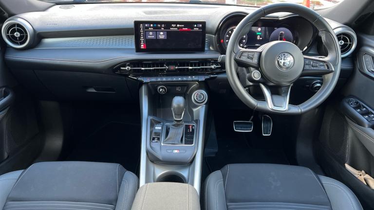 10.25in Radio Touchscreen6-Speaker Sound SystemAlfa Connect ServicesApple CarPlay and Android AutoDAB RadioFront USB - Plug Type A and C - Charge and DataRear USB PortWireless Charging PadAdaptive Cruise ControlAlfa DNA with ESC OffBack Up Camera with Dynamic LinesDrowsy Driver DetectionForward Collision Warning - FCWFront and Rear Parking SensorsLane Support SystemRear Seat Reminder AlertTPMS - Tyre Pressure Monitoring SystemTraffic Sign Recognition18in Alloy Wheels - Dark Finish - Diamond CutBlack and White Alfa Romeo Logo Centre Wheel CapsBlack Painted Mirror CapsBody Coloured Door HandlesCapless Fuel FillerDoor Mirrors - Electrically Adjustable - Folding and HeatedFix and Go Puncture Repair KitFront and Rear Power Windows with Auto Up-Down and Anti-PinchLED License Plate LightRear Spoiler - Body ColourTonale Badge - Chrome FinishWindow Surrounds - Black RubberAutomatic Headlamps - Dusk SensorAutomatic High Beam SystemInterior Puddle LightsLED Rear LightsMatrix Full LED Headlamps with Adaptive System - LED DRL and Fog Light Function2 Way Electric Lumbar Adjustment - Driver60-40 Split Folding Rear SeatsAlfa Connect BoxAluminium PedalsArmrest - FrontAuto Wipers with Rain SensorAuto-Dimming Rear View MirrorBlack Ceiling and PillarsBottle StorageDual-Zone Automatic Air ConditioningFront and Rear FloormatsFull TFT Instrument Cluster - 12.3inKeyless-GoManual - 6 Way Adjustable - Driver and Passenger SeatMono-Colour Ambient LightOverhead Console - Dome Lamp LED and SwitchesRear Air VentsRear Central Armrest and 3 HeadrestsSeatbelt Height AdjustmentSport Leather Steering Wheel with Start ButtonSunvisor Mirror with Light - Driver and Passenger12V PlugsGloss Black Painted Body Kit with Black Side and Front Inserts and SkidplateV Front Bezel BlackIntelligent Speed Assist - ISAPower SteeringSpeed Limiting Device6 AirbagsABS - Anti Lock Braking SystemAutonomous Emergency Braking - AEBElectric Parking BrakeEmergency Braking - Pedestrian and Vulnerable Road Users - Inter-UrbanKeyless-Entry - Front Doors - PassiveVehicle Theft Alarm with Hood Protection and Intrusion Sensor - Thatcham