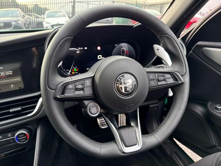 Alfa Connect 3D Nav 8.8in Multi-Touch Infotainment System, Alfa Connect Services, Apple CarPlay and Android Auto, Connectivity - USB & Aux-in Armrest Ports, DAB Radio, European Maps, Rear USB Port, TMC - Pro, USB - Front Centre Console, Wireless Charging Pad, Active Blind Spot Assist, Active Cruise Control, Driver Attention Alert, English Handbook, Front and Rear Parking Sensors, Rear Backup Camera, TPMS - Tyre Pressure Monitoring System, Traffic Sign Recognition, 19in Alloy Wheels - Petal Design - Dark, Alfa Romeo Assistance Sticker, Bumpers - Sports Front, Dark Finish Exhaust Finisher, Dark Finish Rear Lights, Dark Finish V Grille, Door Mirrors - Electrochromatic Autodimming, Electric Windows - Front, Electrically Adjustable and Power Folding Door Mirrors, Exterior Door Handle Courtesy Lights, Fix and Go Puncture Repair Kit, Heated Washer Jets, Kick Plates - Aluminium, Logistics Option Bound to Run-flat Tyres, Monochrome Central Wheel Caps, Veloce Rear Bumper, Automatic High Beam System, Dusk Sensor, Full LED Matrix Trilobe Headlights, 40-20-40 Split Folding Rear Seats, AQS - Air Quality System, Alfa Connect Box, Aluminium Interior Inserts, Aluminium Shift Paddles on Steering Column, Aluminium Sports Pedals, Climate Control, DNA Unlatched, Driver Seat - 6-Way Manual, Driver Side Sun Vision with Mirror, Electrochromic Rear View Mirror, Fabric Seats, Floor Mats, Front Courtesy Map Lamps, Full TFT Instrument Cluster - 12.3in, Functional LED Lighting, Head Restraints - Third Rear,