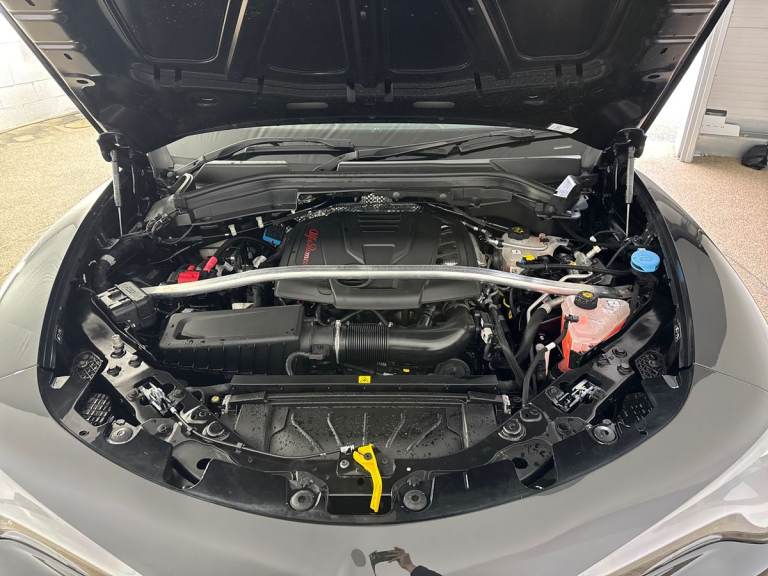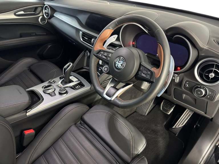 ..12.3'' Full TFT instrument cluster, Active blind spot assist, Active cruise control, Alfa Connect 3D Nav 8.8'' touch display Infotainment system (radio, 3D Nav, MP3, aux-in, bluetooth), Alfa connect box, Alfa connected services, Apple car play/Android Auto, DNA unlatched, Driver attention alert system, European maps, Front and rear parking sensors, Lane departure warning system, Lane keep assist, PAS, Power tailgate, Rear view camera with dynamic grid lines, Remote tailgate release with key fob button, Steering wheel buttons, Stop/start system, TMC Pro, Traffic sign recognition (TSR), Trip computer, Wireless charging pad, Alfa synaptic dynamic control suspension, 2 USB Power socket for rear seat, DAB digital audio broadcast, Harman Kardon sound system, USB and Aux in armrest, Alfa romeo assistance sticker, Auto high beam assist, Automatic headlights with dusk sensor, Automatic rain sensing wipers, Belly pan, Black mirror caps with tri colourcolour italian flagship, Dark finish V grille, Dark matt exhaust tips, Dark miron scudetto (shield), Dark miron skidplate, Electrically adjustable and folding door mirrors, Electrochromatic autodimming outside rearview mirrors, Electrochromatic rear view mirror, Exterior door handle courtesy lights, Exterior mirror finishing, Front and rear electric windows, Fuel door solenoid locking with doors locking, Full LED premium matrix trilobe headlamps, Heated washer nozzles, LED daytime running lights, LED rear dark taillamps, LED third brake light, Rear side wing doors, Rear wash/wipe, 2 Tone steering wheels with tan stitching, 230V/50hz auxiliary power outlet in trunk, 3 seat bench in 2nd row, Air quality control system, Aluminium front kick plate, Aluminium interior inserts, Aluminium shift paddles on steering column, Aluminium sports pedals, AR embroidered logo in the headrest and tan accent stitching 2, Dark headlining, Driver and passenger sunvisors with illuminated vanity mirrors, Dual zone auto temp control with humidity sensor, English handbook, Front head restraints, Front/rear floor mats, Functional LED lighting, Intensa signature tan stitching leather central armrest, Interior ambient lighting, IP Driver storage, Rear air vents, Rear headrests, Roller cover for cargo area, Single front passenger seat, Sports leather gear knob, Tan detail on rear central armrest, Third rear headrest, Unique sporty leather upholstery seats, Driver assistance (ADAS) pack - Stelvio, Driver assistance pack - Stelvio Intensa, Premium