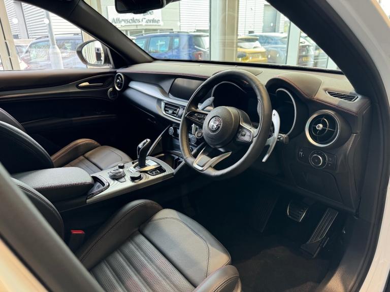 This 2025 Alfa Romeo Stelvio T Tributo Italiano presents an exceptional opportunity with an incredibly low mileage of just 10 miles, practically new for its registration year. Finished in the striking Tributo Italiano trim, this four wheel drive model boasts a powerful 2.0 litre petrol engine, meeting Euro 6 emission standards. Its impressive towing weight of 2300 kg makes it a versatile choice, while the spacious boot offers ample room for all your needs. You'll also appreciate the convenience of heated front seats, active blind spot assist for added safety, and a rear view camera with dynamic grid lines to aid parking.Experience exhilarating performance with the Stelvio's rapid 0-62mph acceleration in just 5.7 seconds, a figure that sets it apart from many similar vehicles. This capability, combined with active cruise control and front and rear parking sensors, ensures a refined and effortless driving experience. These features collectively highlight how this Alfa Romeo Stelvio offers a superior blend of performance, technology, and practicality..Stelvio Tributo Italiano!!.12.3'' Full TFT instrument cluster, Active blind spot assist, Active cruise control, Alfa Connect 3D Nav 8.8'' Infotainment system (radio, 3D Nav, MP3, aux-in, bluetooth), Alfa connect box, Alfa connected services, Apple car play/Android Auto, DNA unlatched, Driver attention alert system, European maps, Front and rear parking sensors, Hands free tailgate, Lane departure warning system, Lane keep assist, PAS, Power tailgate, Rear view camera with dynamic grid lines, Remote tailgate release with key fob button, Steering wheel buttons, Stop/start system, TMC Pro, Traffic sign recognition (TSR), Trip computer, Wireless charging pad, Alfa synaptic dynamic control suspension, Limited slip differential, 2 USB Power socket for rear seat, DAB digital audio broadcast, Harman Kardon sound system, USB and Aux in armrest, Alfa romeo assistance sticker, Auto high beam assist, Automatic headlights with dusk sensor, Automatic rain sensing wipers, Belly pan, Black roof, Body colour kit, Dark finish V grille, Dark matt exhaust tips, Dark miron scudetto (shield), Dark tinted rear windows, Darkened rear lights, Dome bar, Electrically adjustable and folding door mirrors, Electrochromatic autodimming outside rearview mirrors, Electrochromatic rear view mirror, Exterior door handle courtesy lights, Exterior mirror finishing, Front and rear electric windows, Fuel door solenoid locking with doors locking,