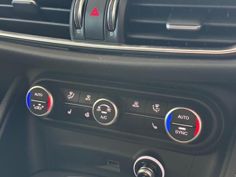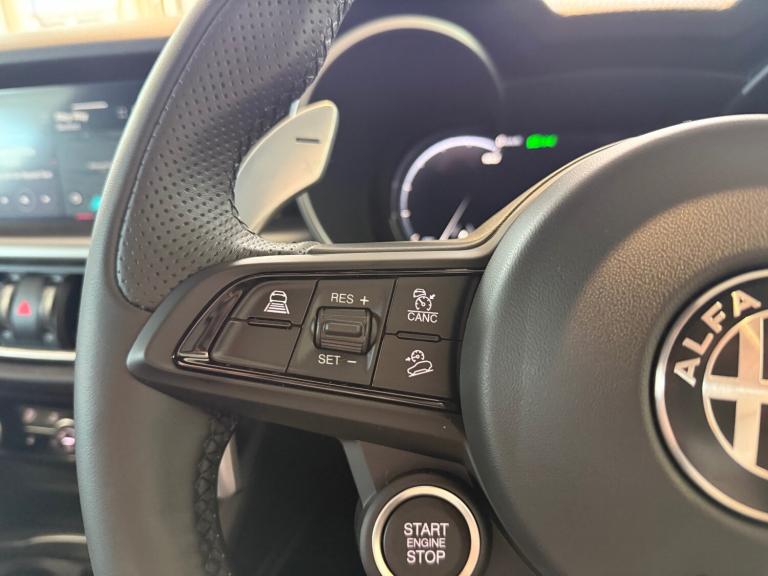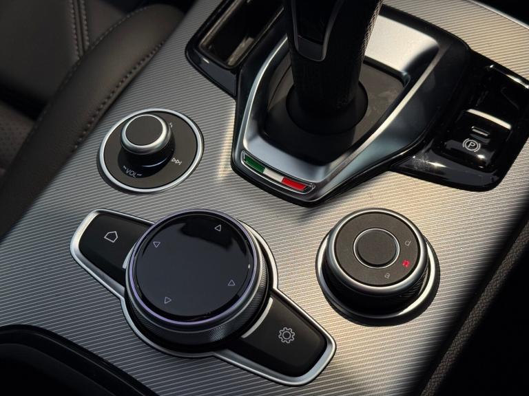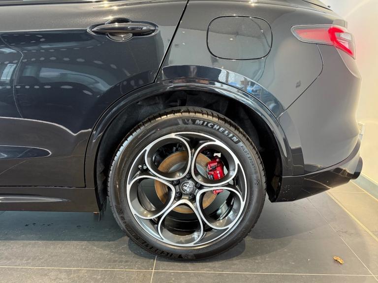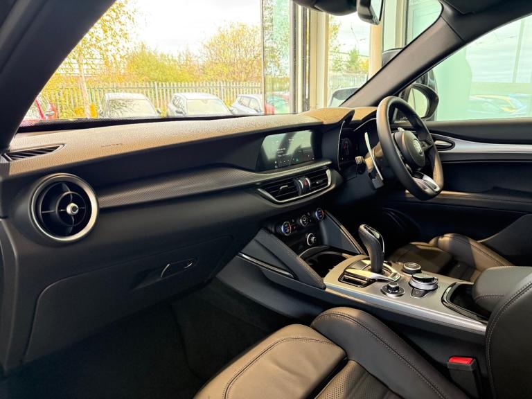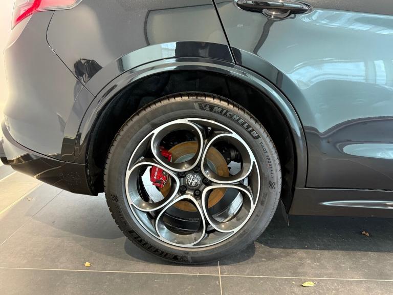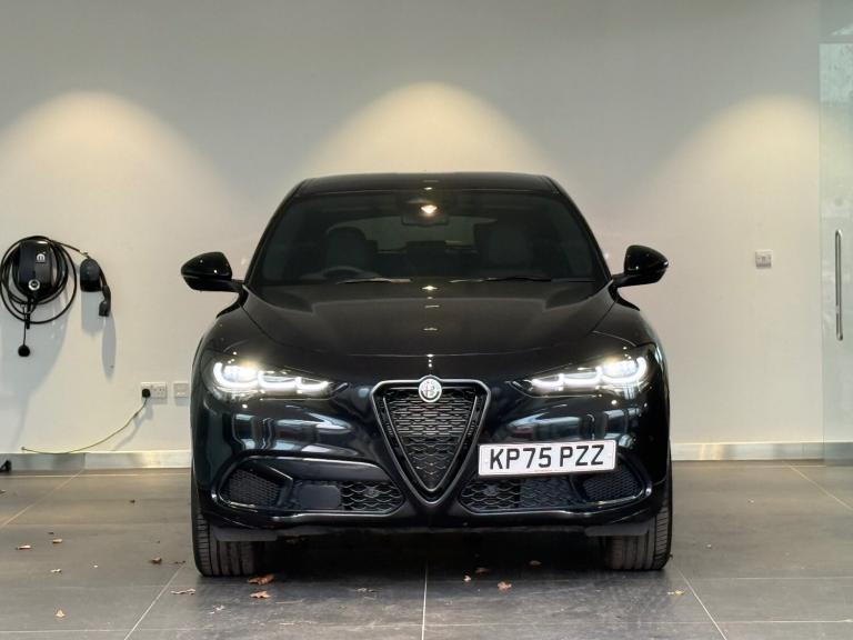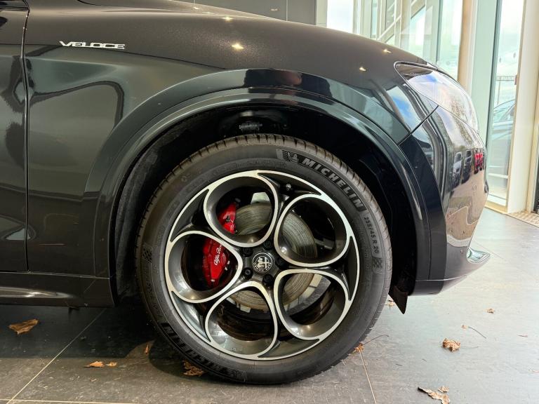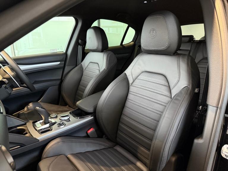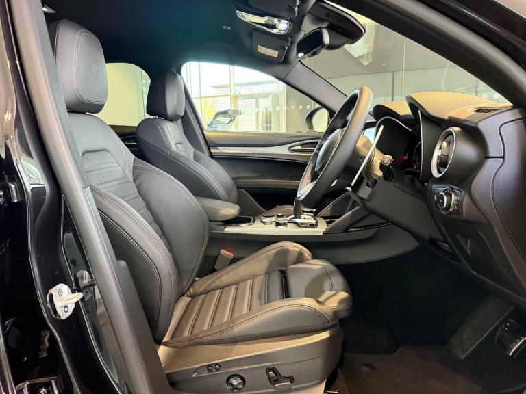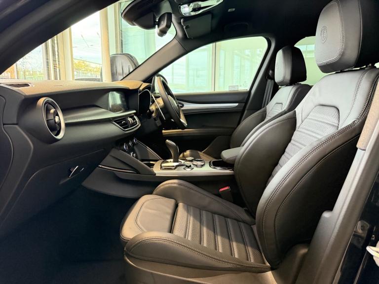 This 2025 Alfa Romeo Stelvio T Veloce is presented with an exceptionally low mileage of just 7 miles, making it virtually new. This four wheel drive SUV is equipped with a 2.0 litre petrol engine and meets Euro 6 emission standards. It offers a substantial towing weight of 2300 kg and boasts a generous boot space, perfect for all your needs.The Stelvio Veloce is designed for a dynamic driving experience, achieving 0-62mph in a swift 5.7 seconds, demonstrating its superior performance compared to similar vehicles. Enhancing your journeys are features such as a rear view camera with dynamic grid lines and front and rear parking sensors, all part of its comprehensive parking assistance system. For added convenience and safety, it includes a wireless charging pad, active blind spot assist, and active cruise control, which adaptively manages your speed for a more relaxed drive..VELOCE, BLACK, MUST SEE.12.3'' Full TFT instrument cluster, Active blind spot assist, Active cruise control, Alfa Connect 3D Nav 8.8'' Infotainment system (radio, 3D Nav, MP3, aux-in, bluetooth), Alfa connect box, Alfa connected services, Apple car play/Android Auto, DNA unlatched, Driver attention alert system, European maps, Front and rear parking sensors, Lane departure warning system, Lane keep assist, PAS, Power tailgate, Rear view camera with dynamic grid lines, Remote tailgate release with key fob button, Steering wheel buttons, Stop/start system, TMC Pro, Traffic sign recognition (TSR), Trip computer, Wireless charging pad, 2 USB Power socket for rear seat, DAB digital audio broadcast, USB and Aux in armrest, Alfa romeo assistance sticker, Auto high beam assist, Automatic headlights with dusk sensor, Automatic rain sensing wipers, Belly pan, Dark finish V grille, Dark matt exhaust tips, Dark miron scudetto (shield), Darkened rear lights, Electrically adjustable and folding door mirrors, Electrochromatic autodimming outside rearview mirrors, Electrochromatic rear view mirror, Exterior door handle courtesy lights, Exterior mirror finishing, Front and rear electric windows, Fuel door solenoid locking with doors locking, Full LED matrix trilobe headlamps, Heated washer jets, LED daytime running lights, LED rear lights, LED third brake light, Rear side wing doors, Rear wash/wipe, 230V/50hz auxiliary power outlet in trunk, 3 seat bench in 2nd row, Air quality control system, Aluminium front kick plate, Aluminium interior inserts, Aluminium shift paddles on steering column, Aluminium