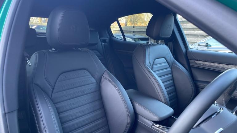 Alfa Connect 3D Nav 8.8in Infotainment SystemAlfa Connected ServicesApple CarPlay and Android AutoConnectivity - 2 USB Rear PortsConnectivity - USB & Aux-in Armrest PortsDAB RadioHarman Kardon AudioTMC - ProWest European MapWireless Charging PadActive Blind Spot AssistActive Cruise ControlActive Lane ManagementDriver Attention AlertFront and Rear Parking SensorsRear View Camera with Dynamic Grid LinesTPMS - Tyre Pressure Monitoring SystemTraffic Sign Recognition20in Alloy Wheels - Dark 5-Hole - QuadrifoglioAkrapovic Sports ExhaustBrake Calipers - Black AnodizedBrake Calipers - RedDark Miron Scudetto - ShieldDark Tinted Rear WindowsElectric Windows - Front and RearElectrically Adjustable and Folding Door MirrorsExterior Door Handle Courtesy LightsExterior Mirror Finishing DefaultFuel Door - Solenoid Locking with Doors LockingGloss Black Window SurroundsHeated Washer NozzlesMonotone Central Wheel CapsOutside Rearview Mirror - Electrochromic AutodimmingQV BadgeTyre Inflation KitAutomatic Headlamps - Dusk SensorAutomatic High Beam SystemDarkened Rear LampsFull LED Matrix Trilobe Headlights3D Carbon Interior Inserts6-Way Power Driver Seat with Memory and 4 Way Lumbar Adjustment6-Way Power Passenger Seat with 4 Way Lumbar AdjustmentAdaptation for Cold CountriesAir Vents - RearAlfa Connect BoxAluminium Shift Paddles on Steering ColumnAluminium Sports PedalsAmbient LightingAQS - Air Quality System FunctionAutomatic Temperature Control - Dual Zone - Humidity SensorCargo Area Roller CoverDNA UnlatchedDome BarElectrochromic Rear View MirrorFloor Mats - Front and RearFront Sun Visor with Illuminated Vanity MirrorFull TFT Instrument Cluster - 12.3inFunctional LED LightingHands-Free TailgateHeadlining - DarkHeated Front SeatsHeated Steering WheelIP Driver StorageLeather Wrapped Dashboard and Upper DoorPower Seat BolsterPower TailgateQuadrifoglio Leather-Alcantara Flat Bottomed Sports Steering Wheel with Carbon InsertRain Sensing WipersRemote Tailgate ReleaseSports Leather SeatsSteering Wheel ButtonsAlfa SDC Suspension - Synaptic Dynamic ControlMLSD - Mechanical Limited Slip DifferentialPower SteeringABS - Anti Lock Braking SystemAirbags - DriverAirbags - PassengerAirbags - Passenger DeactivationAlarm System with Bonnet and Intrusion ProtectionASR - Anti-Slip RegulationAutonomous Emergency Braking - AEBESC - Electronic Stability ControlFront Seat-Mounted Side AirbagsHill Descent