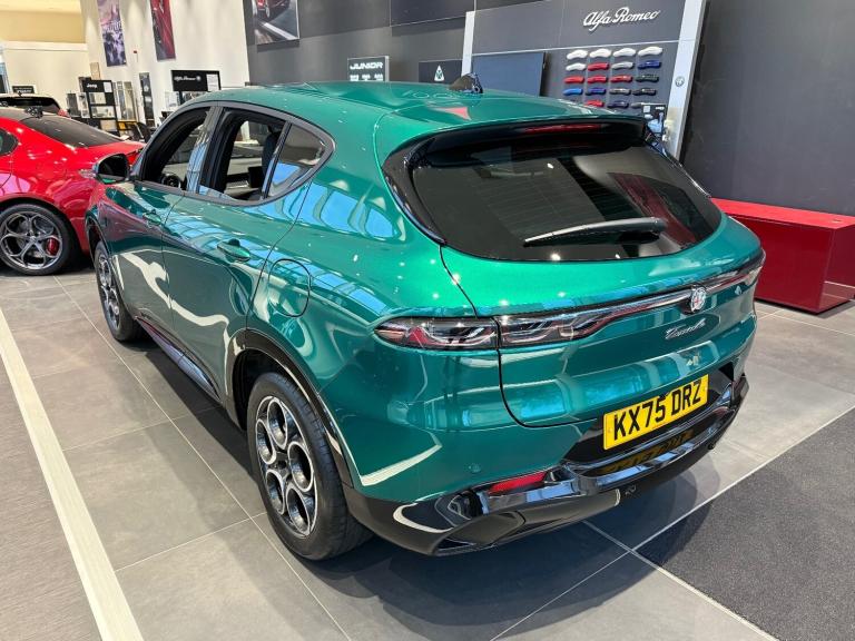 Alfa Romeo Tonale 1.3 PHEV Sprint 5dr Auto.MONTREAL GREEN, PHEV, 280BHP.Adaptive cruise control with Stop and Go, Alfa connect box, Alfa connect services, Alfa dna with esc off (3 modes + esc off), Apple car play/Android Auto, Drowsy driver detection, e-Call (emergency call), Forward collision warning, Full tft instrument cluster - 12.3'', Intelligent speed assist, Lane support system, PAS, Passive / keyless entry (front doors), Quick guide in english, Speed limiting device, Traffic sign recognition (w/navigation), Warranty handbook uk, Wireless charging pad, Mode 2 charging cable, Mode 3 charging cable, 10.25'' radio touchscreen, usb, bluetooth audio streaming, voice controls with navigation, DAB digital audio broadcast, PHEV infotainment specific graphics and features, 4 Interior puddle lights, Auto headlamps with dusk sensor, Auto high beam, Auto wipers with rain sensor, Auto-dimming rear internal mirror, Black painted mirror caps, Body colour door handles, Body colour rear roof spoiler, Chrome finishing tonale badge, Electric exterior mirrors (heated), Electrical-folding exterior mirrors, Front and rear power windows with auto up/down and antipinch, Full LED rear lamps, Grained body kit, LED blade stop light, LED cornering projector light, LED license plate light, Matrix full led headlamps with adaptive system and fog light function, Phev exterior badging, Privacy glass, Rear side wing doors, Rear wiper, Roof, hood and exterior mirrors protection, Shark fin antenna, U shaped LED blades DRL signature and dynamic turn indicator, V front bezel black, Welcome/leaving lighting, 12V socket in boot, 60/40 Rear seats with ski pass, Alfa logo electrowelded on headrest, Black ceiling and pillars, Bottle storage 1l on door panel, Centre armrest with dark grey stitching, Centre tunnel with rotary shifter and glossy black painted central bezel, Door armrest with biscotto stitching, Dual zone air conditioning with aqs (with rear airvents), Front armrest (integrated in the central tunnel), Front headrests, Front usb plug type a + c (charge + data), Front/rear floor mats, Metallic pedals, Mono colour ambient light (included in domelamp), Overhead console with domelamp led and switches, PTC heater, Rear central armrest and 3 headrests, Rear usb plug type a + c (charge), Scoba shark black grain PVC centre armrest, Scoba shark black grain PVC upper door panel and armrest, Seat belt height adjustment, Single front passenger seat, Sport leather steering wheel with start