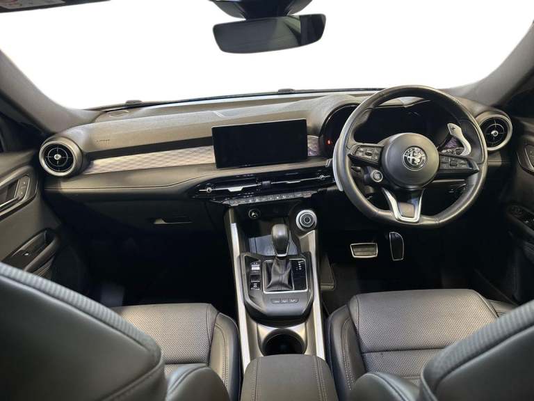 ..Adaptive cruise control with Stop and Go, Alfa connect box, Alfa connect services, Alfa dna with esc off (3 modes + esc off), Apple car play/Android Auto, Drowsy driver detection, e-Call (emergency call), Forward collision warning, Full tft instrument cluster - 12.3'', Intelligent speed assist, Lane support system, PAS, Passive / keyless entry (front doors), Quick guide in english, Speed limiting device, Traffic sign recognition (w/navigation), Warranty handbook uk, Wireless charging pad, Mode 2 charging cable, Mode 3 charging cable, 10.25'' radio touchscreen, usb, bluetooth audio streaming, voice controls with navigation, DAB digital audio broadcast, PHEV infotainment specific graphics and features, 4 Interior puddle lights, Auto headlamps with dusk sensor, Auto high beam, Auto wipers with rain sensor, Auto-dimming rear internal mirror, Black painted mirror caps, Body colour door handles, Body colour rear roof spoiler, Chrome finishing tonale badge, Electric exterior mirrors (heated), Electrical-folding exterior mirrors, Front and rear power windows with auto up/down and antipinch, Full LED rear lamps, Gloss black painted body kit w/ Black side and front inserts and skidplate, Gloss black painted window surround, LED blade stop light, LED cornering projector light, LED license plate light, Matrix full led headlamps with adaptive system and fog light function, Phev exterior badging, Privacy glass, Rear side wing doors, Rear wiper, Roof, hood and exterior mirrors protection, Shark fin antenna, U shaped LED blades DRL signature and dynamic turn indicator, V front bezel black, Welcome/leaving lighting, 12V socket in boot, 4 Ways electric driver and passenger lumbar adjustment, 60/40 Rear seats with ski pass, Alfa logo embroided on headrest, Ambient lighting and backlighted film-carbon look, Black ceiling and pillars, Bottle storage 1l on door panel, Centre armrest with dark grey stitching, Centre tunnel with rotary shifter and glossy black painted central bezel, Door armrest with biscotto stitching, Dual zone air conditioning with aqs (with rear airvents), Front armrest (integrated in the central tunnel), Front headrests, Front usb plug type a + c (charge + data), Front/rear floor mats, Metallic pedals, Mono colour ambient light (included in domelamp), Overhead console with domelamp led and switches, Perforated leather upholstery, PTC heater, Rear central armrest and 3 headrests, Rear usb plug type a + c (charge), Scoba shark black grain PVC centre