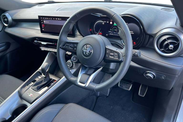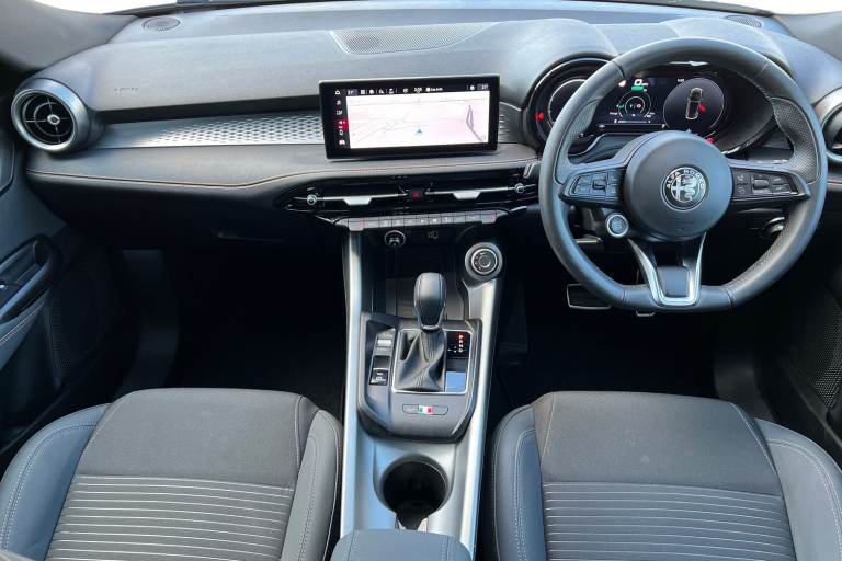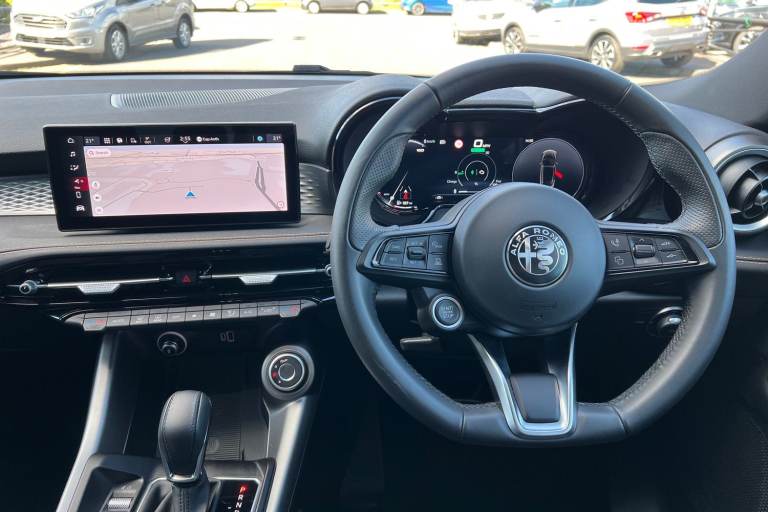 ..Cloth - Carbon, Riverside Approved Sale, Remainder of Alfa Romeo Manufacturers Warranty, Great MPG, No Administration Fees Applicable, 145 Point Riverside Approved Mechanical / Safety Check, 10.25in Radio Touchscreen, 12V Plugs, 18in Alloy Wheels - Dark Finish - Diamond Cut, 2 Way Electric Lumbar Adjustment - Driver, 6 Airbags, 6-Speaker Sound System, 60-40 Split Folding Rear Seats, ABS - Anti Lock Braking System, Adaptive Cruise Control, Alfa Connect Box, Alfa Connect Services, Alfa DNA with ESC Off, Aluminium Pedals, Apple CarPlay and Android Auto, Armrest - Front, Auto Wipers with Rain Sensor, Auto-Dimming Rear View Mirror, Automatic Headlamps - Dusk Sensor, Automatic High Beam System, Autonomous Emergency Braking - AEB, Back Up Camera with Dynamic Lines, Black Ceiling and Pillars, Black Painted Mirror Caps, Black and White Alfa Romeo Logo Centre Wheel Caps, Body Coloured Door Handles, Bottle Storage, Capless Fuel Filler, DAB Radio, Door Mirrors - Electrically Adjustable - Folding and Heated, Drowsy Driver Detection, Dual-Zone Automatic Air Conditioning, Electric Parking Brake, Emergency Braking - Pedestrian and Vulnerable Road Users - Inter-Urban, Fix and Go Puncture Repair Kit, Forward Collision Warning - FCW, Front USB - Plug Type A and C - Charge and Data, Front and Rear Floormats, Front and Rear Parking Sensors, Front and Rear Power Windows with Auto Up-Down and Anti-Pinch, Full TFT Instrument Cluster - 12.3in, Gloss Black Painted Body Kit with Black Side and Front Inserts and Skidplate, Intelligent Speed Assist - ISA, Interior Puddle Lights, Keyless-Entry - Front Doors - Passive, Keyless-Go, LED License Plate Light, LED Rear Lights, Lane Support System, Manual - 6 Way Adjustable - Driver and Passenger Seat, Matrix Full LED Headlamps with Adaptive System - LED DRL and Fog Light Function, Mono-Colour Ambient Light, Overhead Console - Dome Lamp LED and Switches, Power Steering, Rear Air Vents, Rear Central Armrest and 3 Headrests, Rear Seat Reminder Alert, Rear Spoiler - Body Colour, Rear USB Port, Seatbelt Height Adjustment, Speed Limiting Device, Sport Leather Steering Wheel with Start Button, Sunvisor Mirror with Light - Driver and Passenger, TPMS - Tyre Pressure Monitoring System, Tonale Badge - Chrome Finish, Traffic Sign Recognition, V Front Bezel Black, Vehicle Theft Alarm with Hood Protection and Intrusion Sensor - Thatcham, Window Surrounds - Black Rubber, Wireless Charging Pad