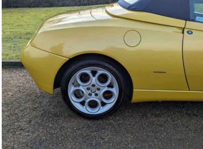 Alfa Romeo Spider Lusso 2.0 Twin Spark 16V, manual, finished in the rare metallic Zoe Yellow with leather interior and air conditioning. 87,341 miles and MOT until 11th January 2027.