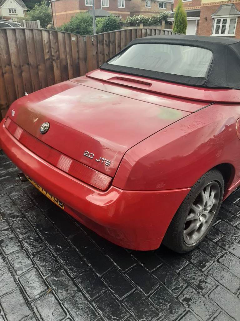 Here is my alfa romeo 2.0 jts spider convertible for sale it drives like new it requires painting due to bonnet fade so I stripped it with intension of doing it and rubbed a few more light stone chips down nd covered with red primer but unfortunately I can't finish it now, I've owned this car a number of years and it's never let me down the body work is sound no rust whatsoever, it was in showroom condition before apart from the bonnet color fade perhaps I should have left it but I've always been a perfectionist lol, i have the photos to prove how it was before I started the bonnet and chips on bodywork, the car is like new underneath, also the plate is reasonably negotiable if wanted! mot till Sept 29 2026 any trial welcome
