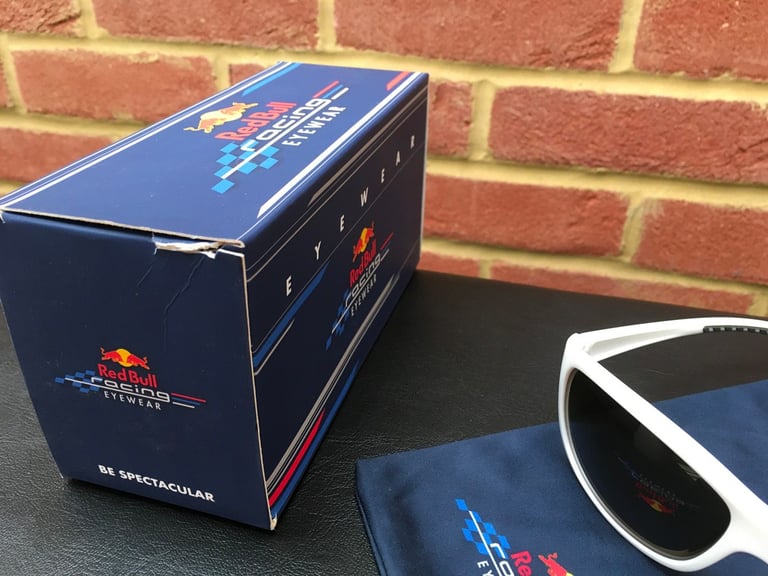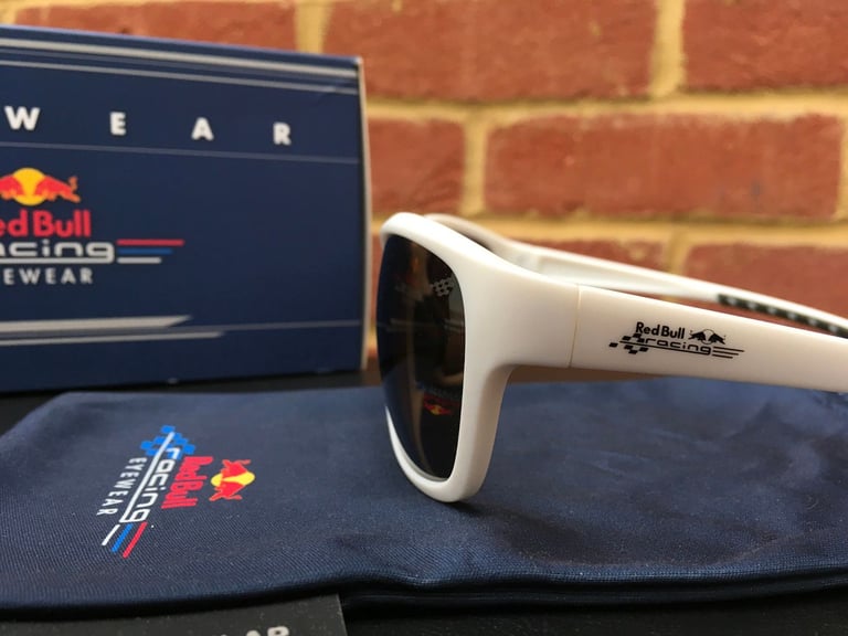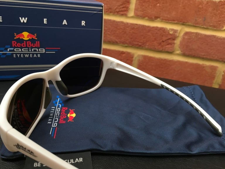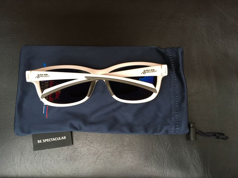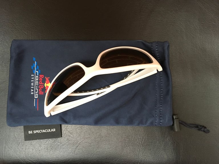 This is a pair of unworn sunglasses from the Red Bull Racing premium optics range. They come with a draw string non-scratch pouch which doubles as a micro-fiber lens cleaning cloth.