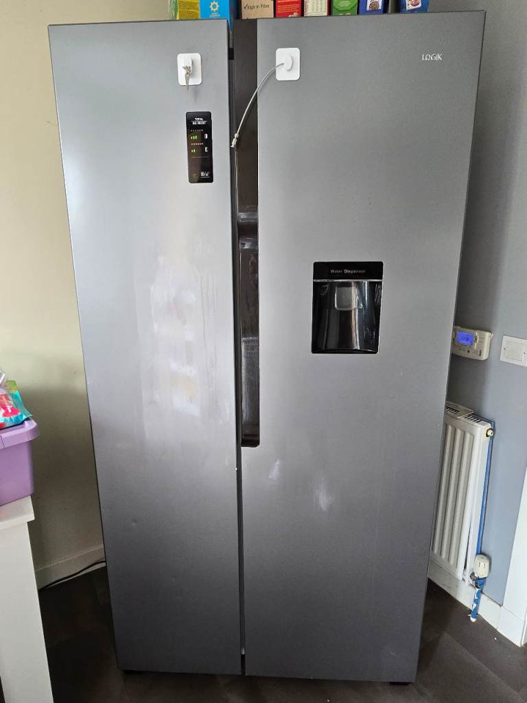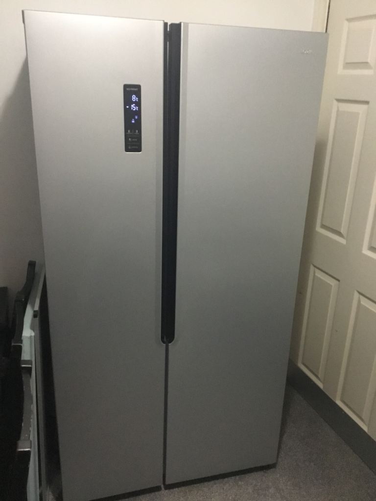 🚚Beautiful Hisense 92CM Wide Stainless Steel French Style Fridge Freezer For Sale Works Great £349 No Offers