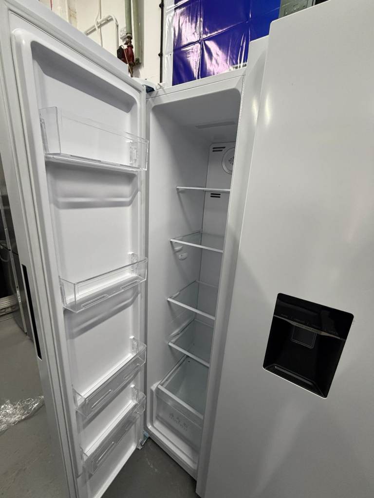 Bush White American Fridge Freezer with Water Dispenser in excellent working condition and comes with a warranty. Delivery available across London every day of the week.