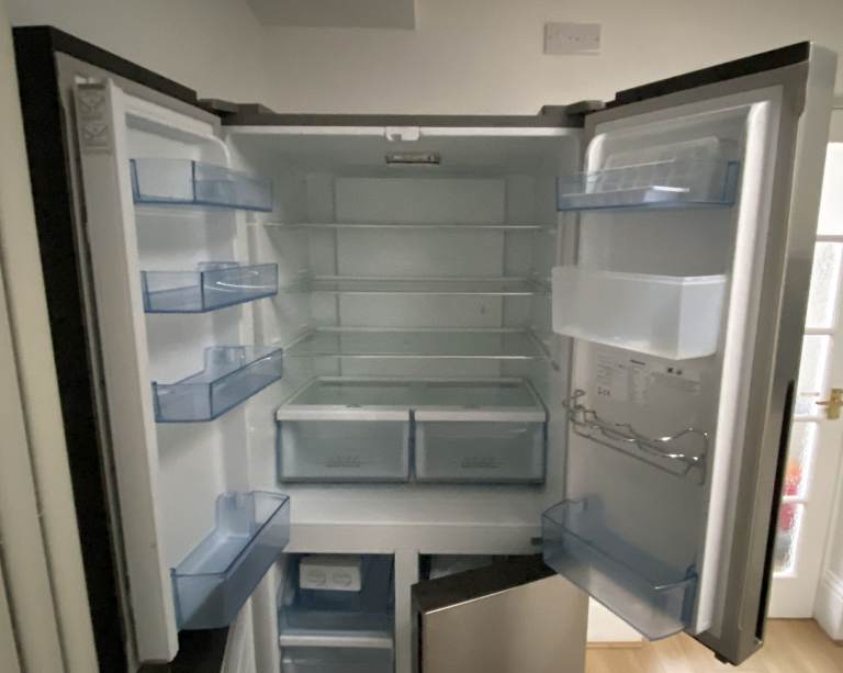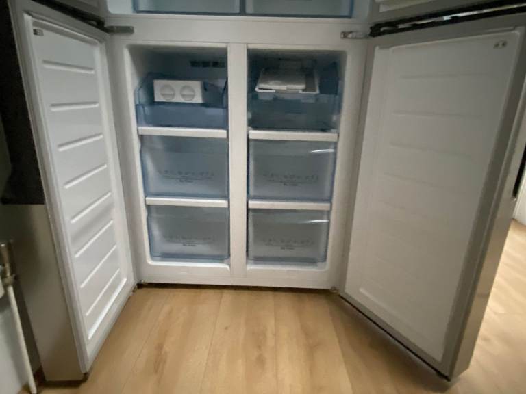 This American-style fridge freezer is the slimmest cross-door model available, but still boasts a large 431 litre capacity. While some fridge freezers run the risk of drying out your food, the RQ560N4WC1 will not – its ‘Moisture Control Crisper Box’ allows you to adjust the humidity in the compartment, ensuring food is kept in ideal conditions. You can store meat, veg and more, with tailored settings to keep it all fresh. The RQ560N4WC1 comes with a great selection of extras to complement its settings. In place of standard bulbs are LEDs, giving off brighter and more energy efficient lighting. There is an LED display built into the unit’s door, offering clear feedback on the fridge freezer’s internal temperatures, and electronic touch controls to make easy adjustments. These is also an unplumbed water dispenser built into the door of the RQ560N4WC1. Providing you with chilled water on tap, the benefits of an unplumbed dispenser are twofold. Unplumbed units are far easier to install and leave you free to change the fridge freezer’s location in future. With a four-star rating, this freezer will store your food safely for up to 12 months, and in the case of a power failure, you can avoid any food wastage for up to 15 hours. Featuring a stylish stainless-steel finish, this fridge freezer will be a perfect fit for any modern kitchen.452 litre capacity