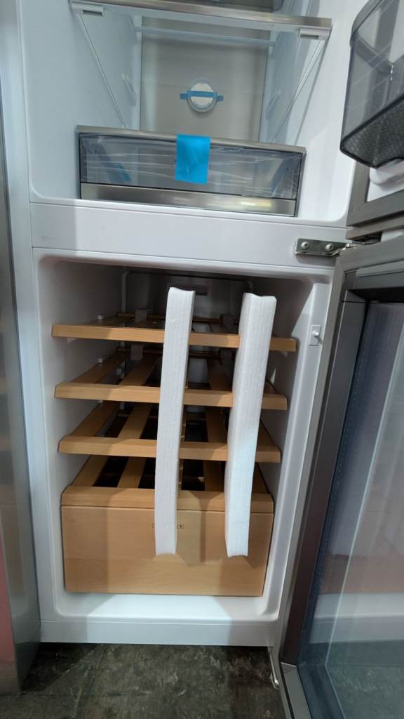 With its dedicated 128L wine storage with wooden shelves and pull-out compartment, this fridge freezer gives you the perfect space to keep your bottles well-stored, displayed, and ready for any occasion.