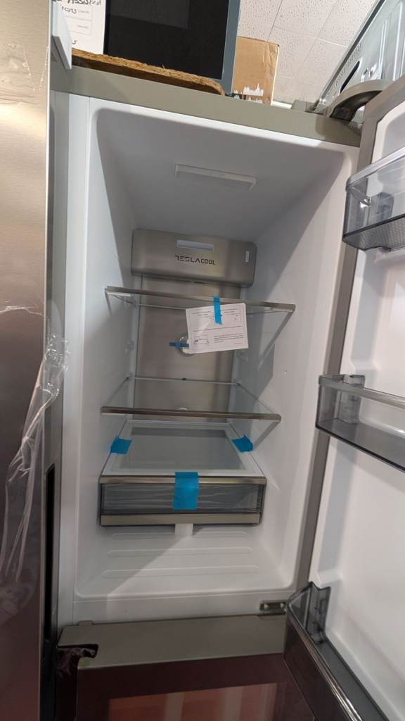 From the iconic Tesla brand, the new range of “TeslaCool” brings a premium range of refrigeration. With a total capacity of 529L uniquely split with a 212L fridge space, 128L variable compartment (wine storage) and 189L freezer space, this appliance gives you ample storage for all your requirements. With the inbuilt plumbed water and ice dispenser along with the wine storage compartment, this appliance really is the complete package. With Total No Frost, say goodbye to the tedious task of defrosting and with the quiet inverter compressor, look forward to efficient cooling and a quieter life. The sleek handleless design and its premium features, will enable this appliance to be a standout centrepiece in your kitchen