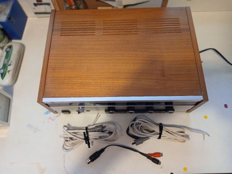 This a vintage stereo integrated amplifier known for its solid build and excellalnt sound quality. Facilities.Can operate two turntables for use in discotheques. Public address microphone facility.Four channel Matrix mode.Four speaker availability . It is in excellant condition and has been used up to date mainly in tuner mode.