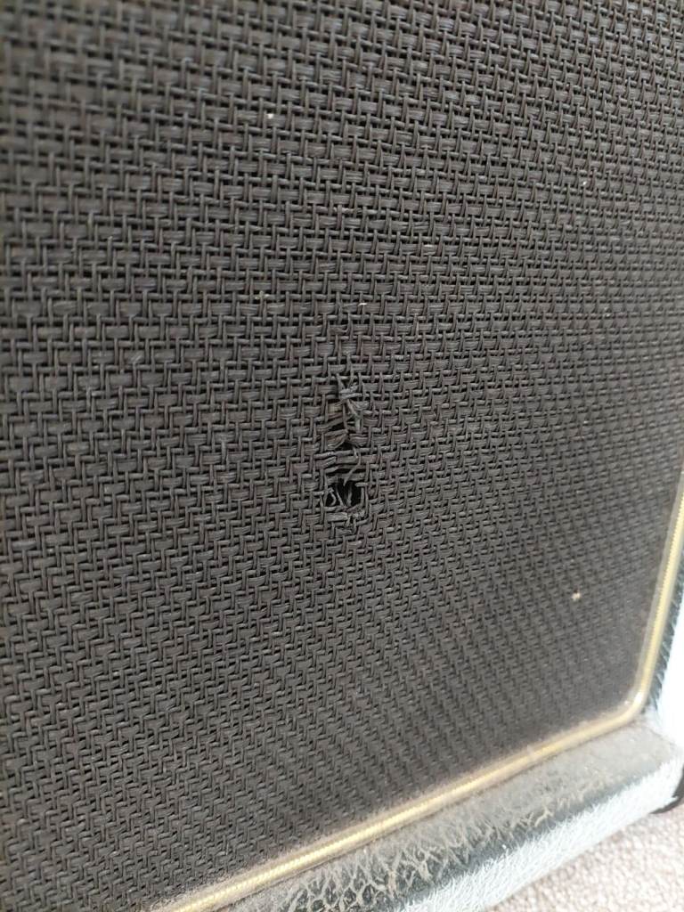 * Fair cosmetic condition – painted white years ago, and looks a bit battered but still decent overall. There’s a small puncture in the front speaker cloth, purely cosmetic.