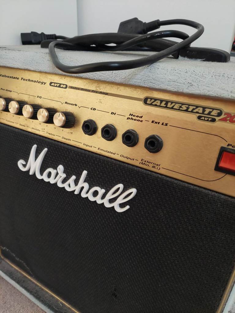 The AVT20 uses a genuine ECC83 (12AX7) valve in the preamp section, combined with a solid-state power stage. It gives you classic Marshall warmth and dynamic response, with the convenience and reliability of a solid-state amp.