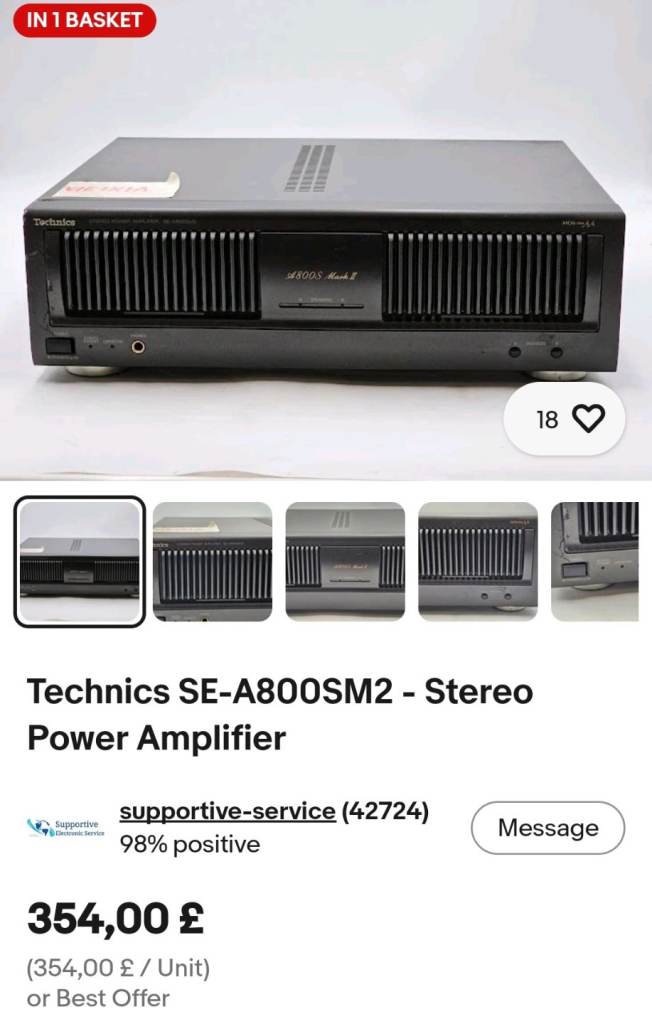 Rare and collectable, Technics vintage power amplifier, "MOS class AA, excellent working condition. Visually not perfect, with scuffs on the cover (top side) - visible on the photo.