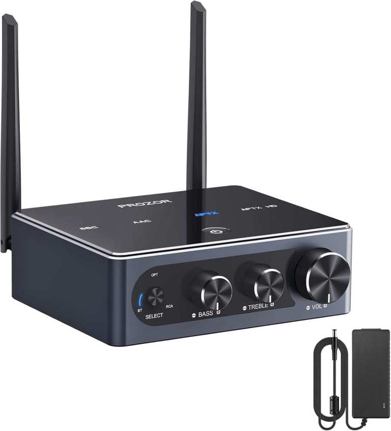 【Bluetooth 5.2 & aptX HD Lossless Transmission】 --- Featuring Bluetooth Amp Technology with QCC3034 Chip, Supports AAC, SBC, aptX, and aptX-HD for Stable, High-fidelity Transmission up to 32.8ft