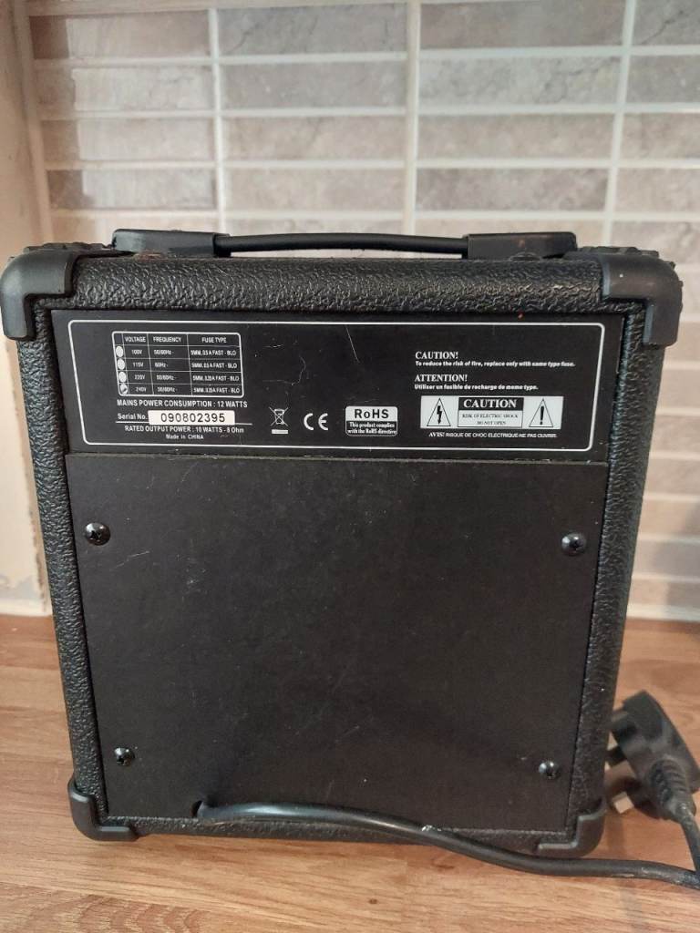 Rockburn g10 amplifier, 10w output with both bass and trebler dials and overdrive switch. Small but quality amp and in almost perfect condition. Only used a couple of times.