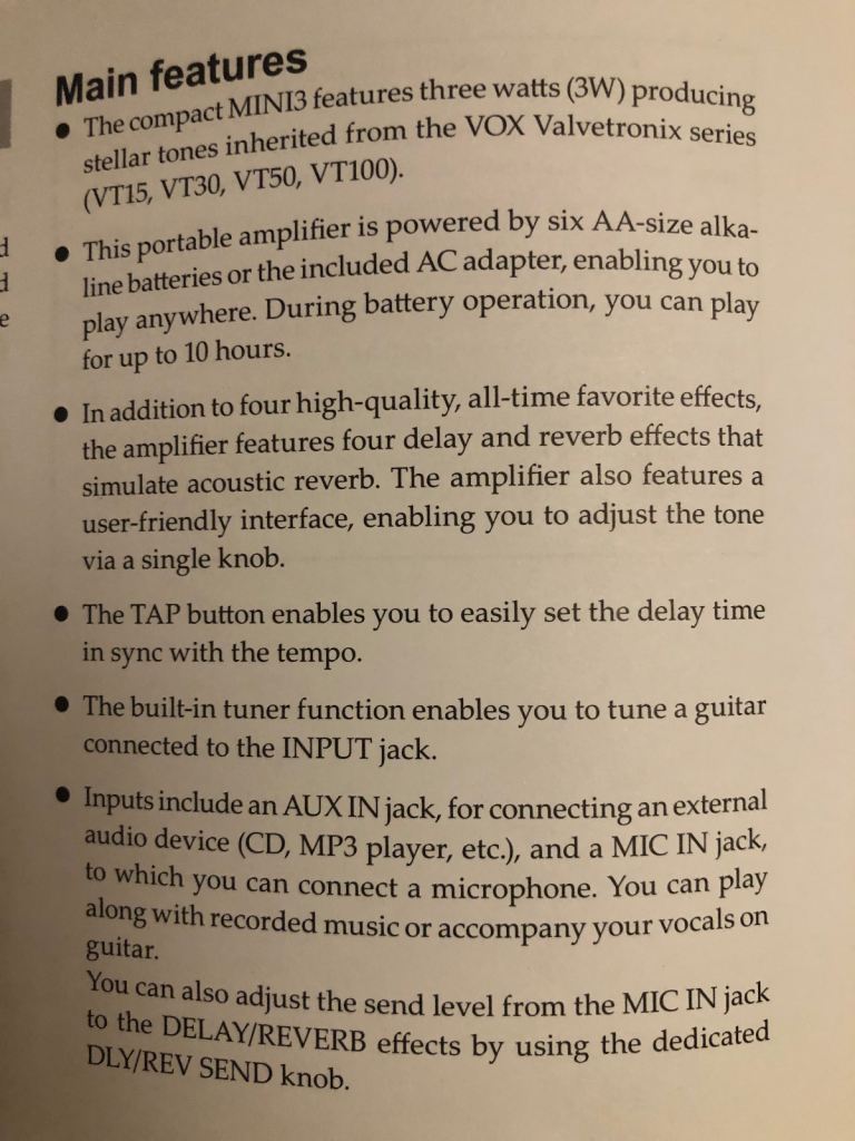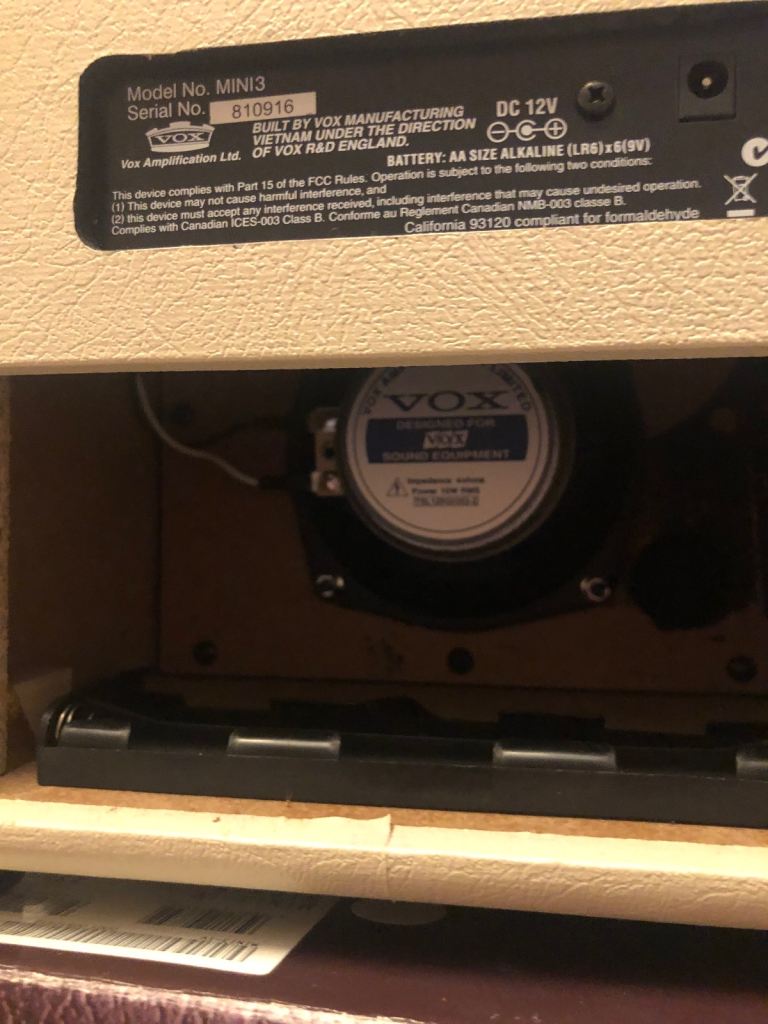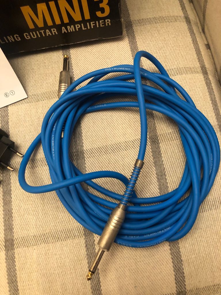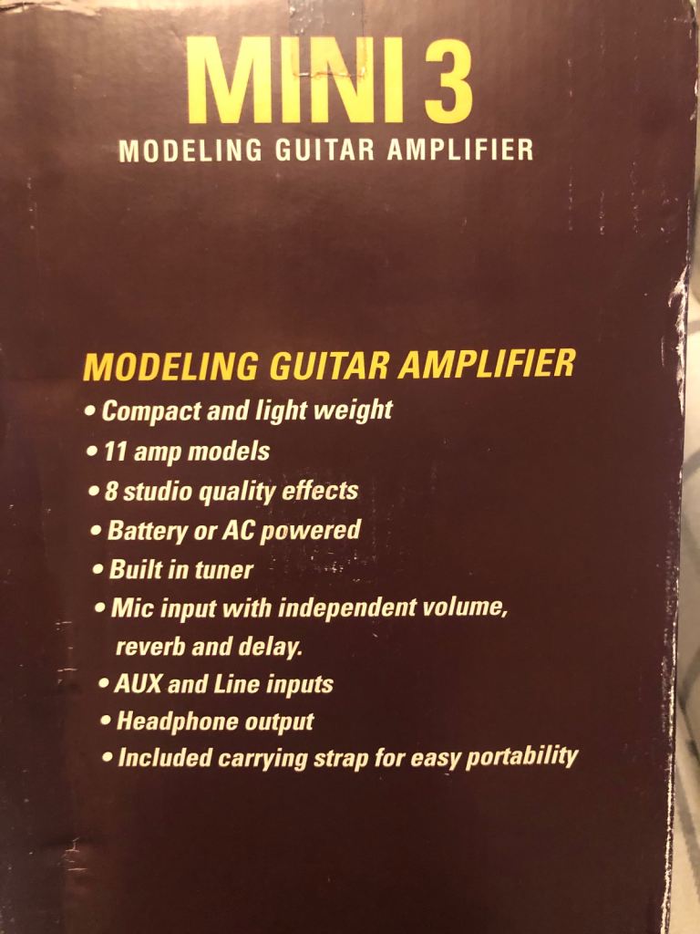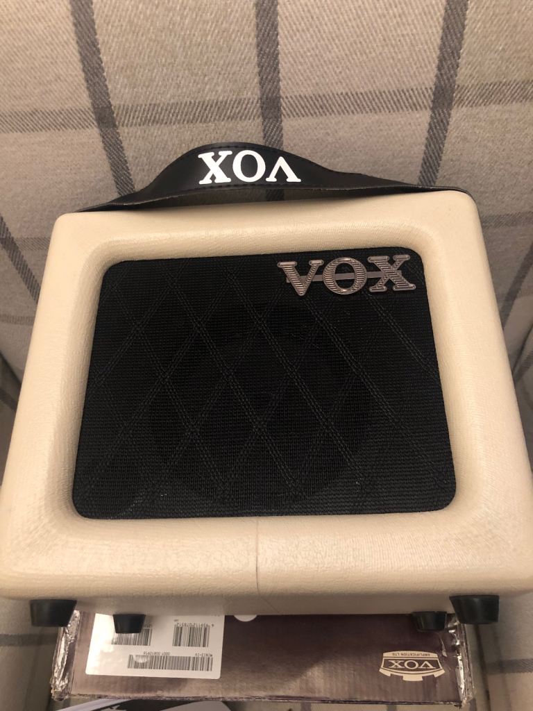 VOX Mini 3 amp in excellent, as new condition. Used about 3 times. Cream colour. With box, user manual, AC mains lead and a long great quality guitar/instrument cable as well. Also runs on 6 AA batteries.