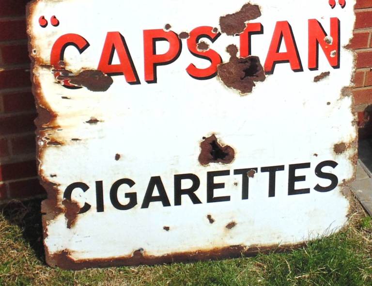 Here we have a large 'Wills's Capstan' enamel advertising sign. In ok condition with age related wear and tear as shown in attached pictures. Ref. (#971)