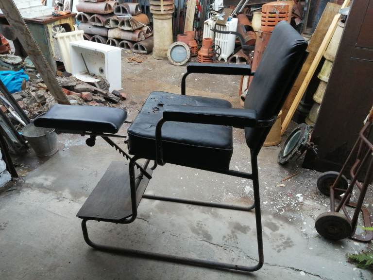 Queen anne high back orthopedic chair with Cabriole legs, in good condition, no rips or tears.