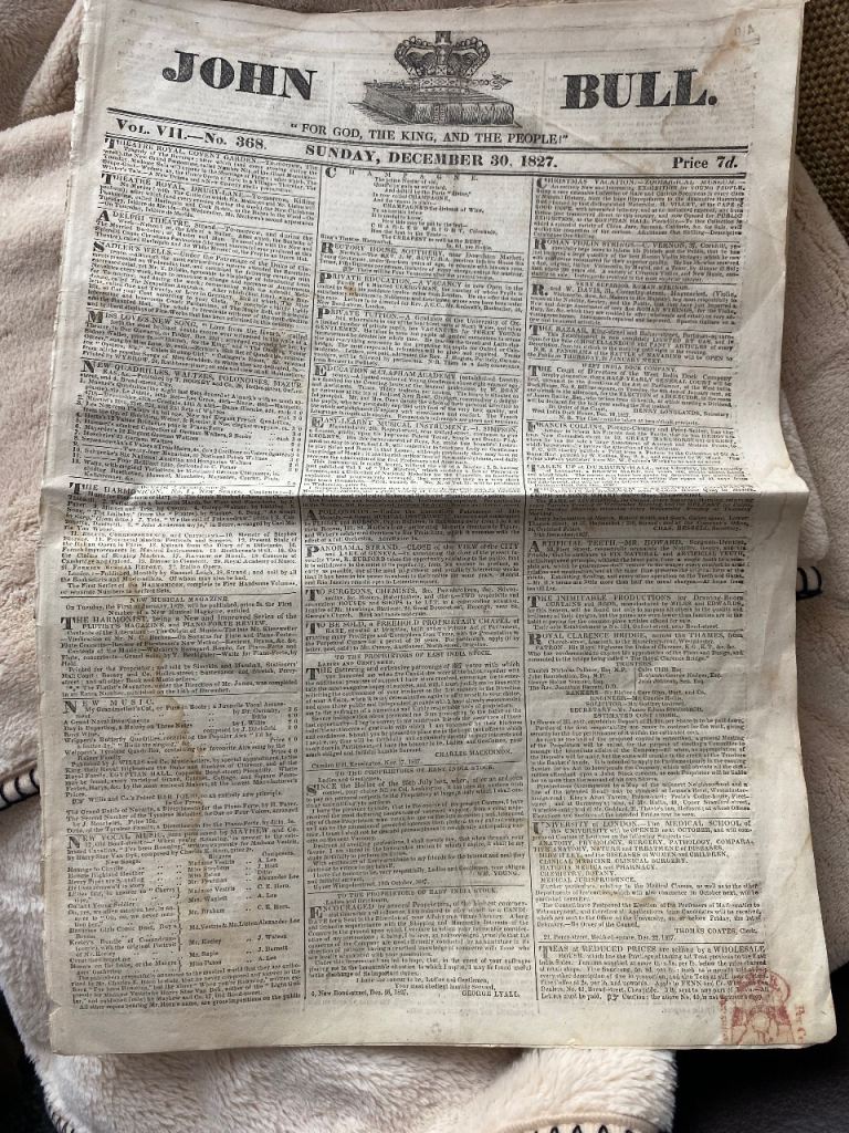 1827 John Bull original newspaper