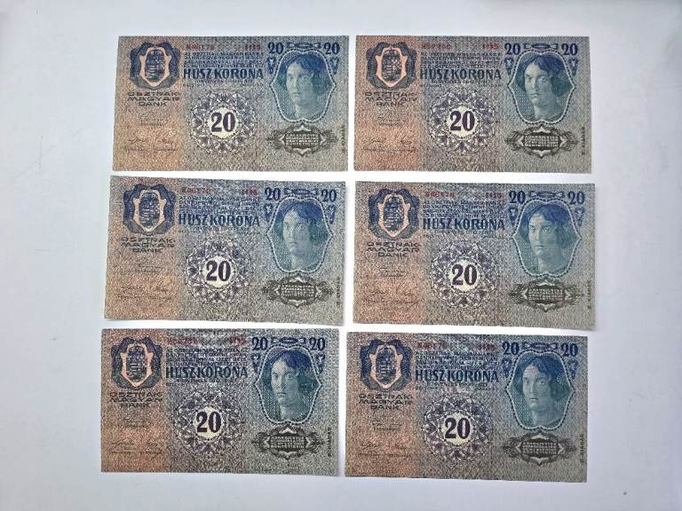 1915 Antique Austria-Hungary 20 Koruna Banknotes