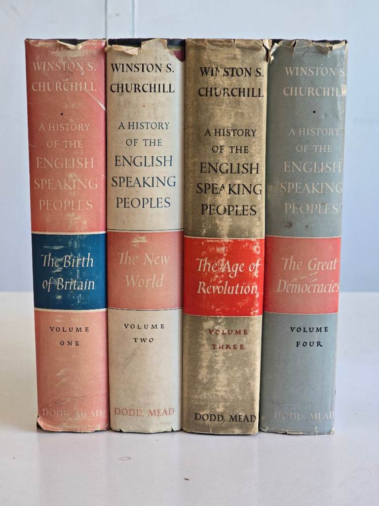 1958 Antique Churchill A History of English Speaking People Vol. I-IV Early Edition w/ Dust Hackets