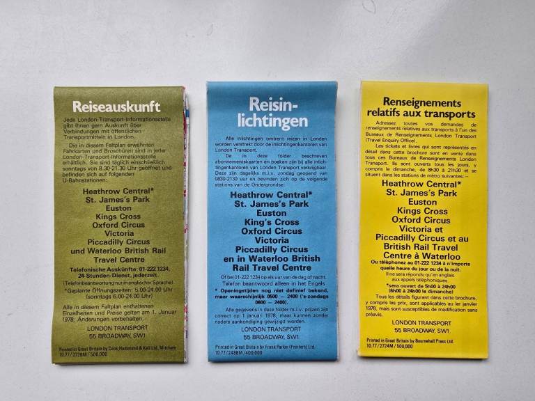1978 Vintage Expandable Map of Central London Transport Tourist Maps (NL,FR,De) £15/Each