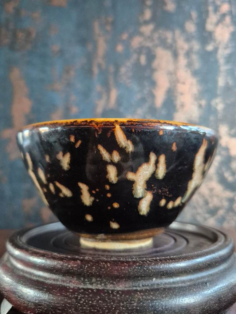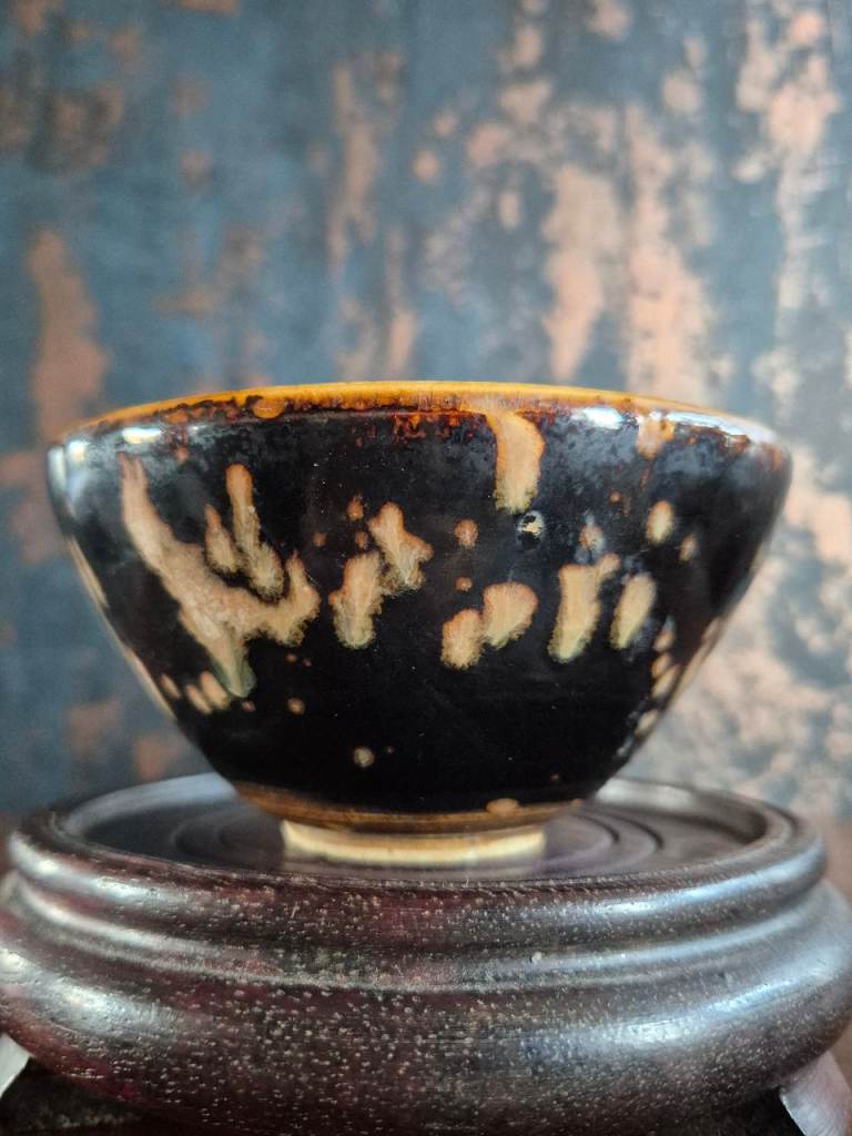 19th c Chinese Jizhou Ware Tortoiseshell glaze pattern tea bowl in perfect condition size 5.5cm H 10.5cm diameter