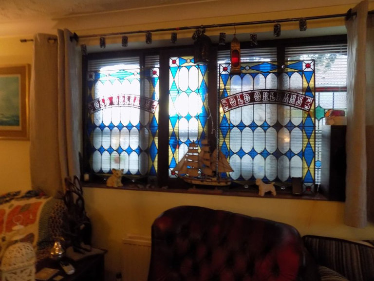 IN AN ORIGINAL~3 X Gorgeous Vintage Leaded Light Stain Glass Window Panels Reclaimed from old pub Old Orleans 1890/1900 Antique/Vintage LARGE Stained Glass Windows one n frame VGC sun catcher