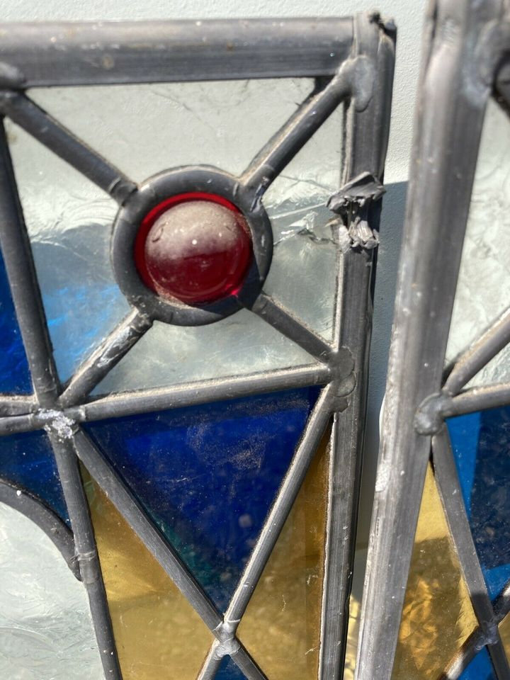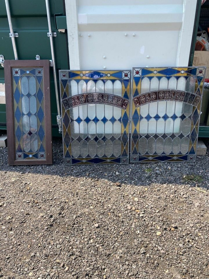 3 X Gorgeous Vintage Leaded Light Stain Glass Window Panels Reclaimed OldOrleans