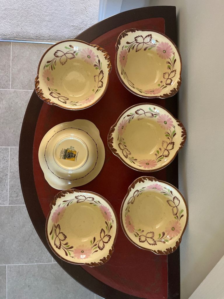 6 x bowls Gray's Pottery Art Deco hand painted plate pattern