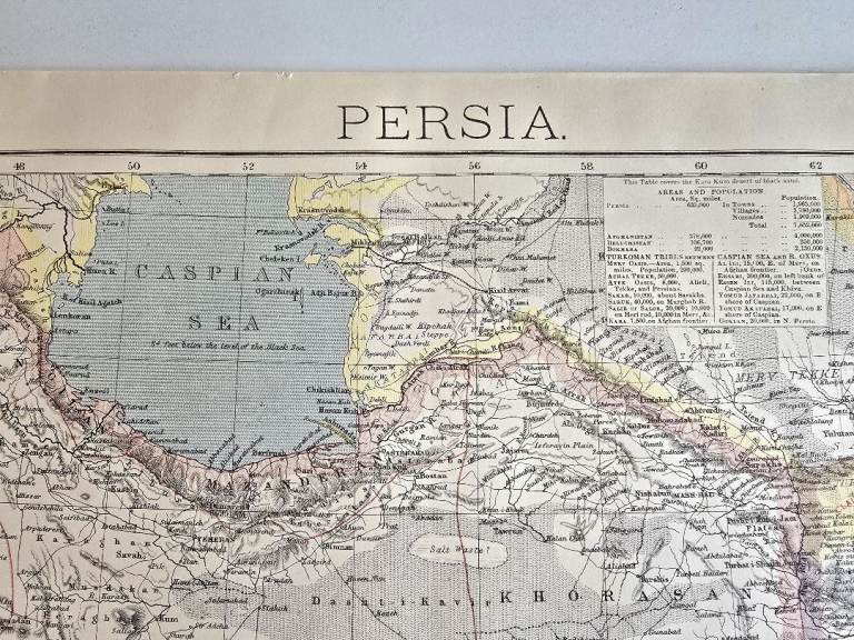 Antique 1880s Victorian Map Persian/Qajar Empire Large Atlas Map Lett's Beautiful Details- 47x34cm