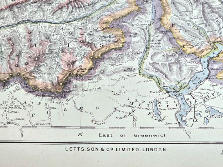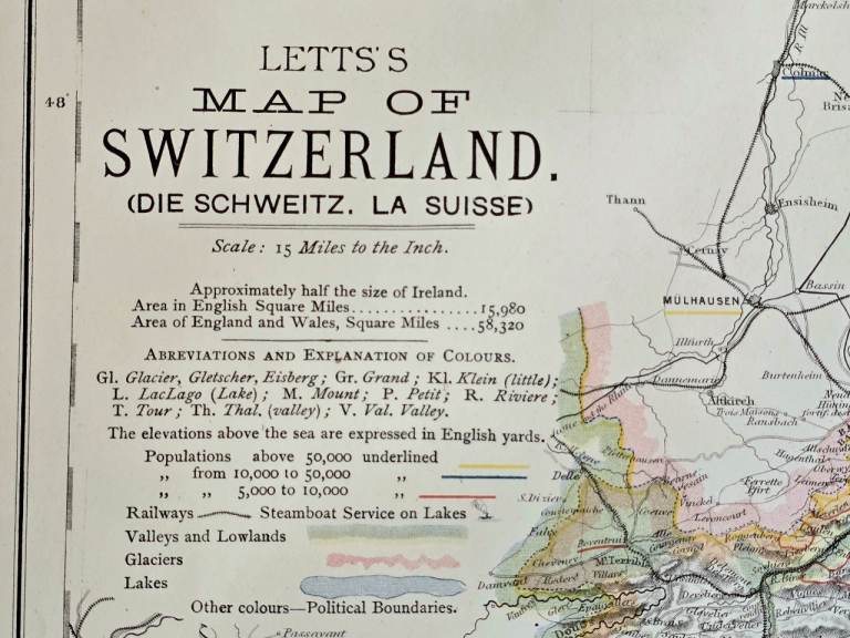 Antique 1880s Victorian Map Switzerland Large Atlas Map Lett's Beautiful Details- 47x34cm