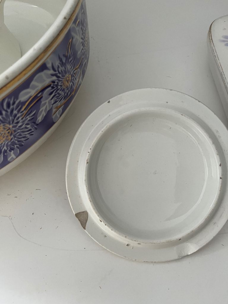 All in excellent condition, old chip on inner lid soap dish which is not visible on display.
