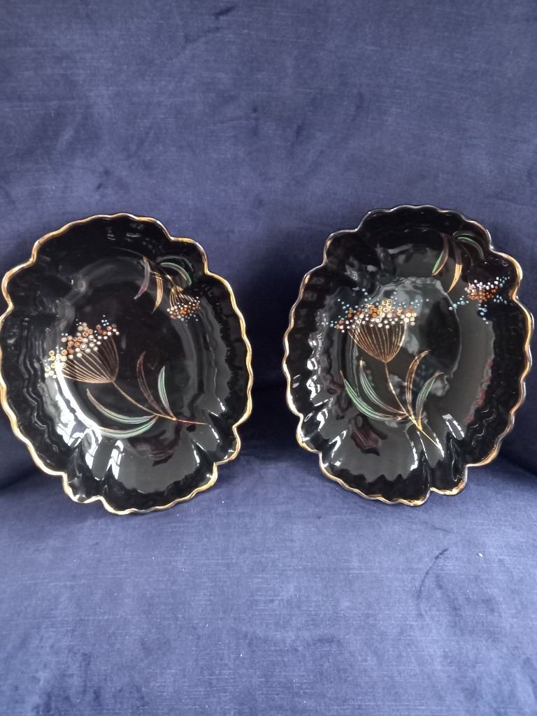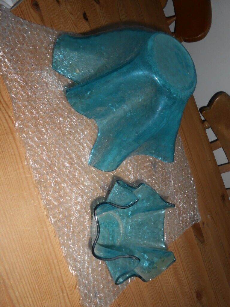 ANTIQUE BLUE GLASS HANDKERCHIEF BOWLS/ORNAMENTS
