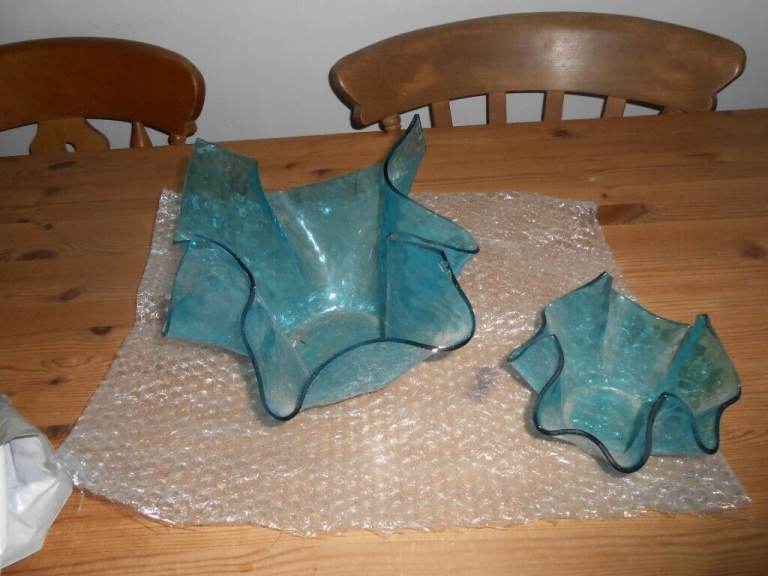 ANTIQUE BLUE GLASS HANDKERCHIEF BOWLS