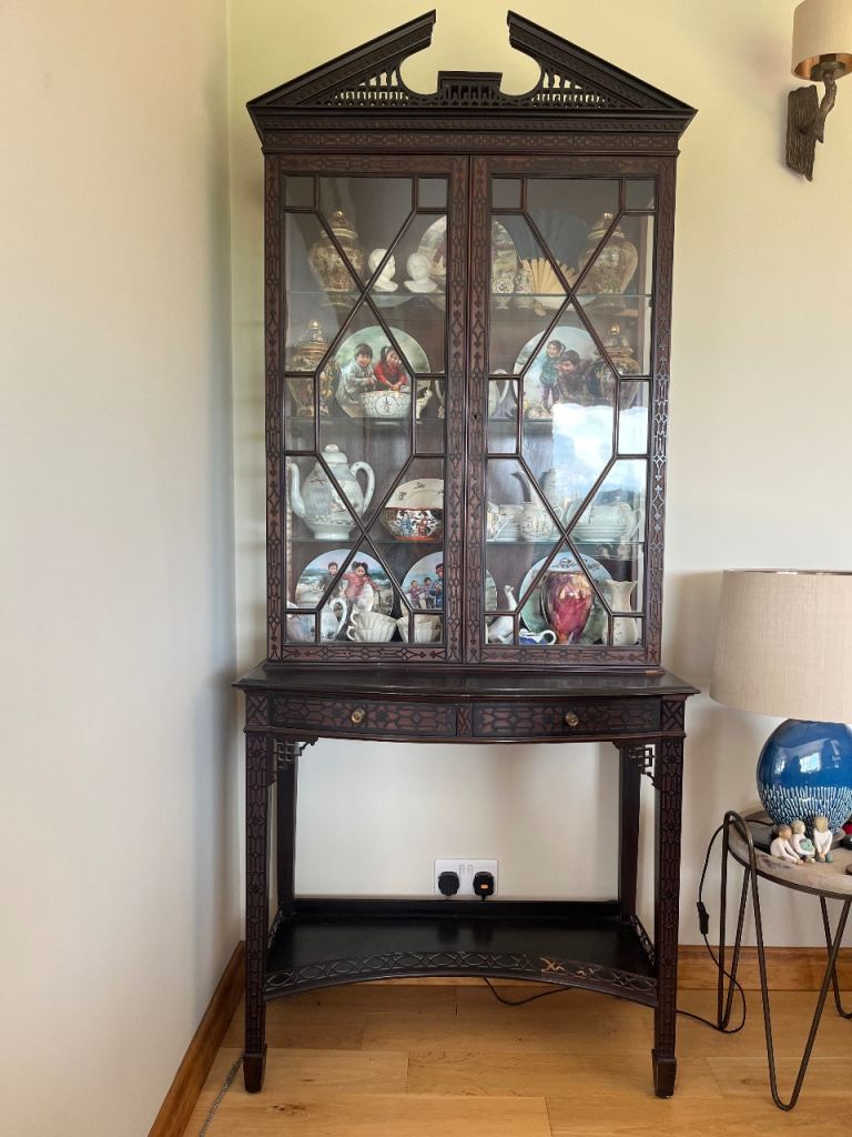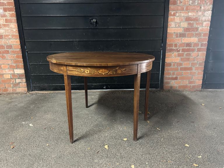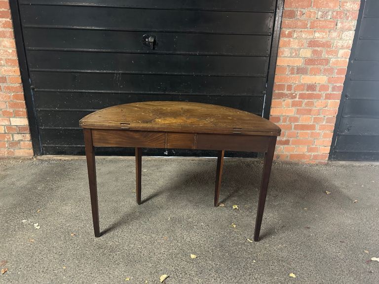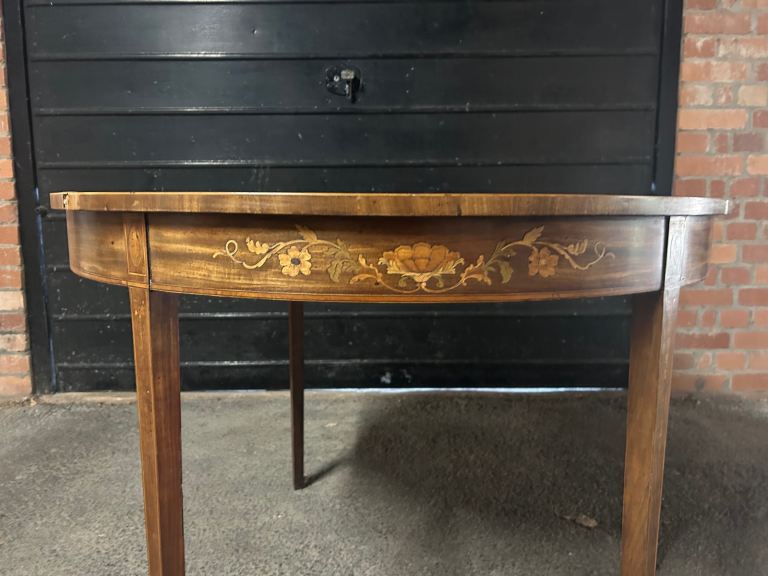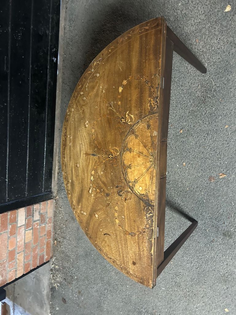 Replica Demi-lune table. Some water damage on the Demi-side, but otherwise in great condition.