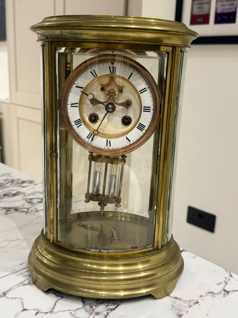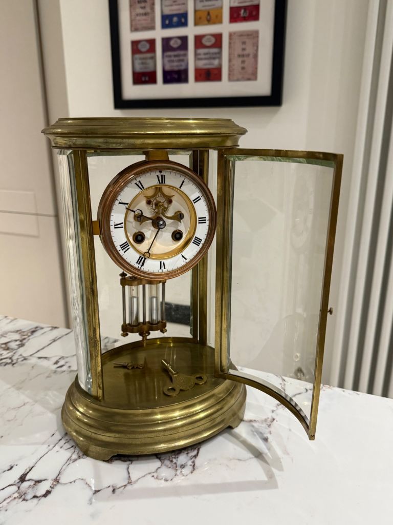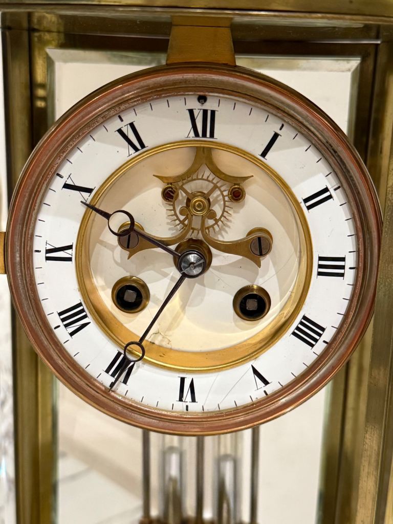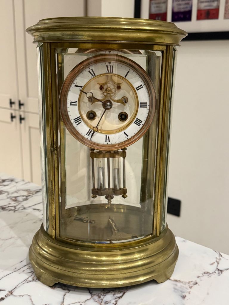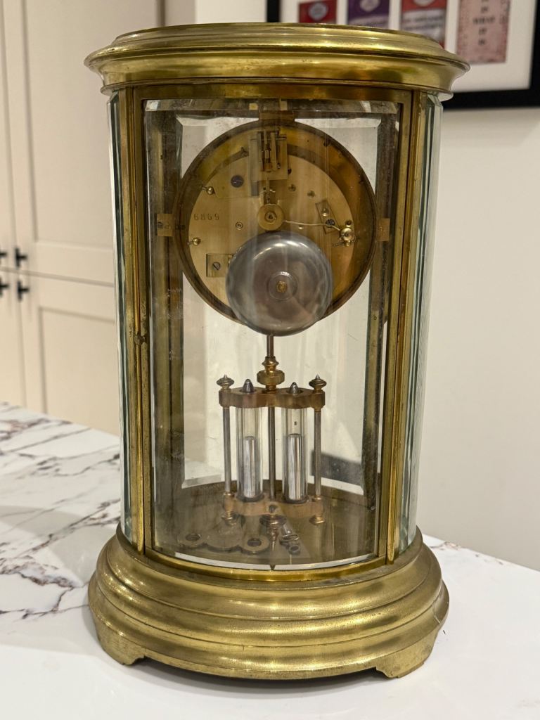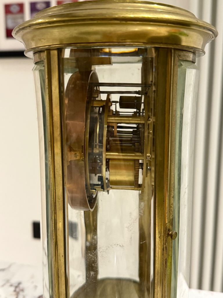 Antique Four Glass Bevelled French Mantel Clock Samuel Marti et Cie