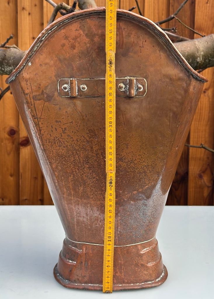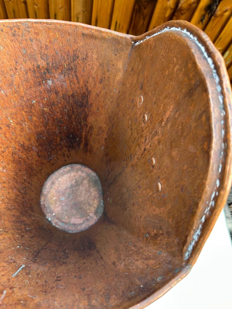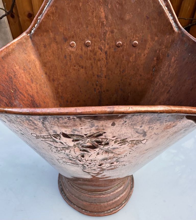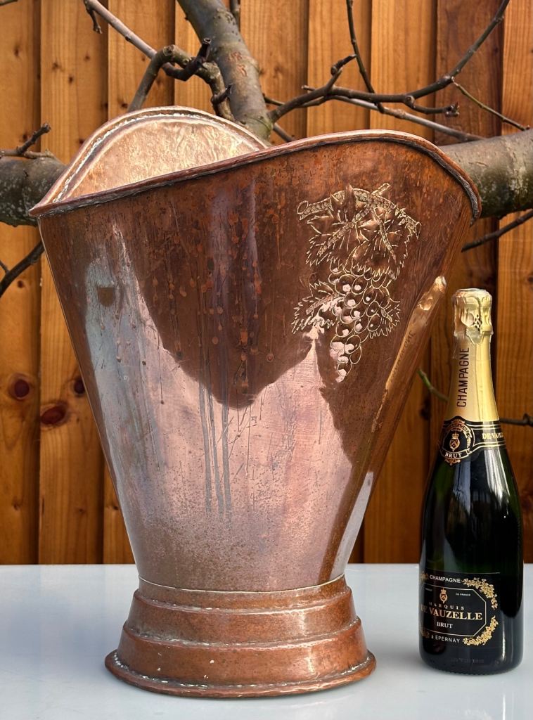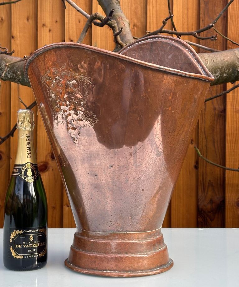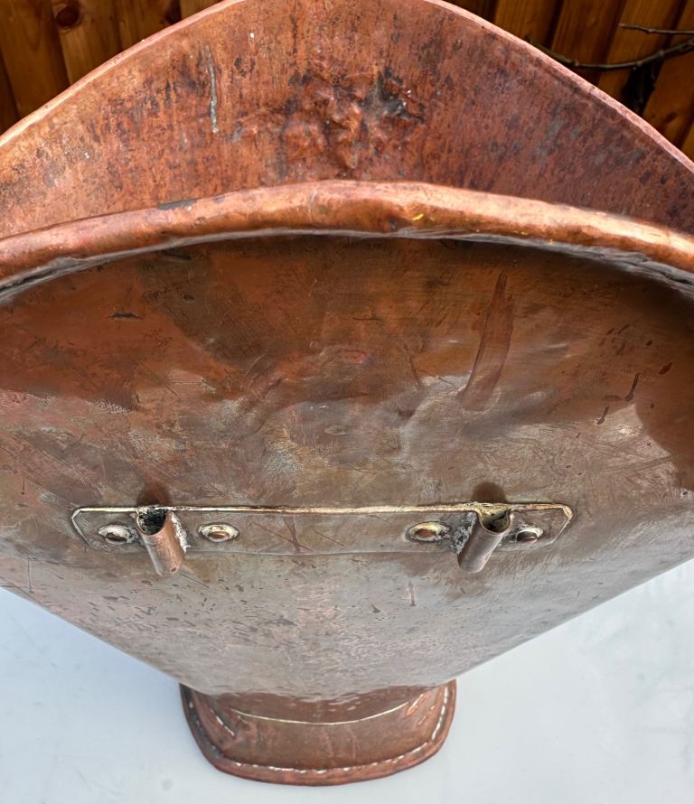 ANTIQUE FRENCH COPPER GRAPE HARVEST HOD, BUCKET - PLANTER, LOG BUCKET, ICE BUCKET, UMBRELLA STAND, 49cm tall 38cm long 32cm wide/deep 3.4kg - 1900s ART NOUVEAU ARTS & CRAFTS - REDUCED!