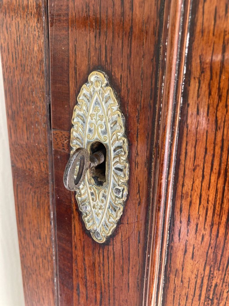 Lovely inlaid design at the top of the door. Dimensions: 1.05m tall x 76cm wide x 44cm deep.
