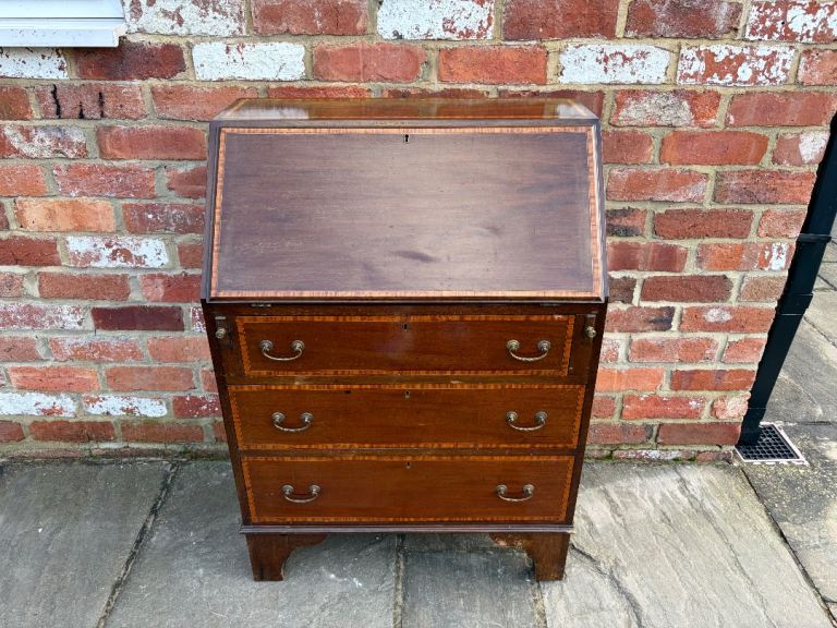 A genuine late Georgian oak fall-front writing bureau, dating from around 1780–1810.