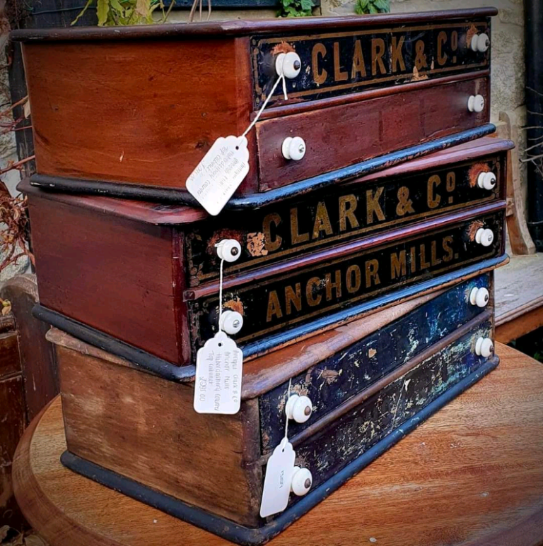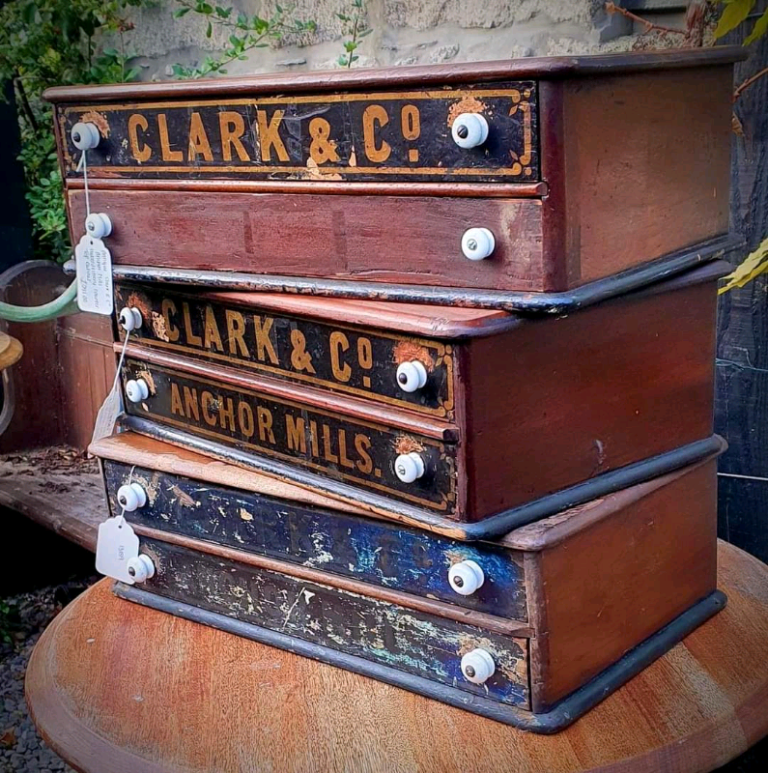 Antique Haberdashery Shop Display Drawers by Clark & Co Anchor Mills.