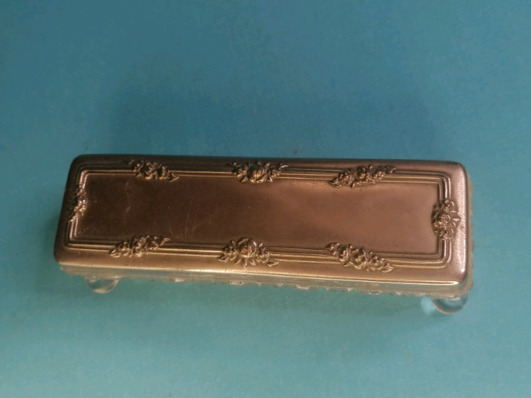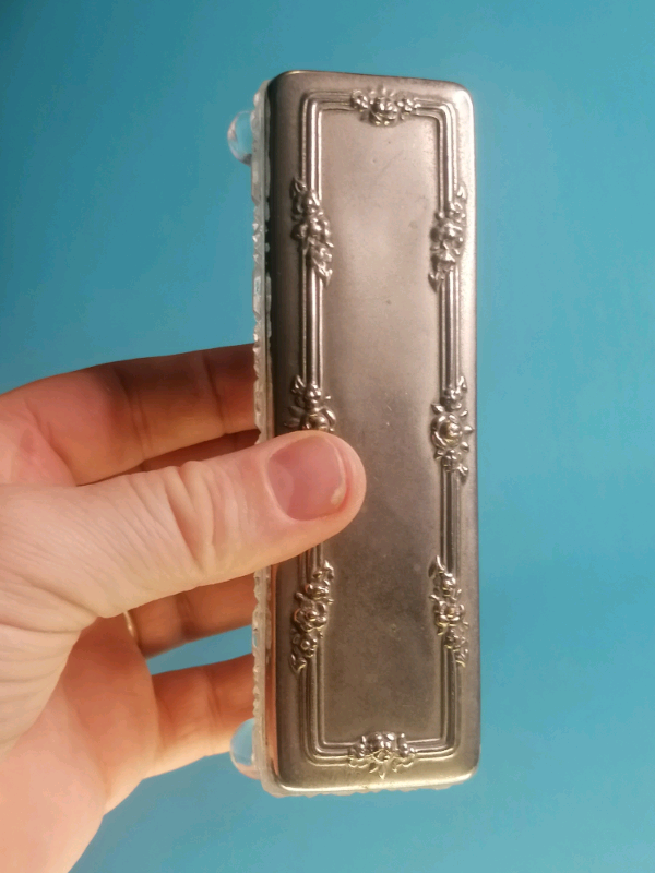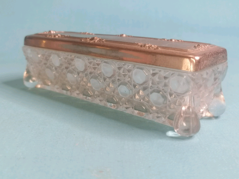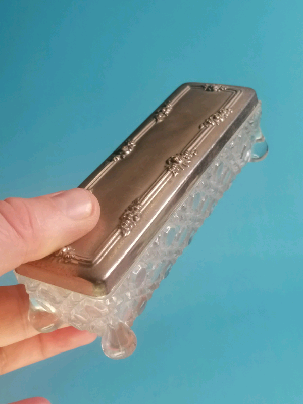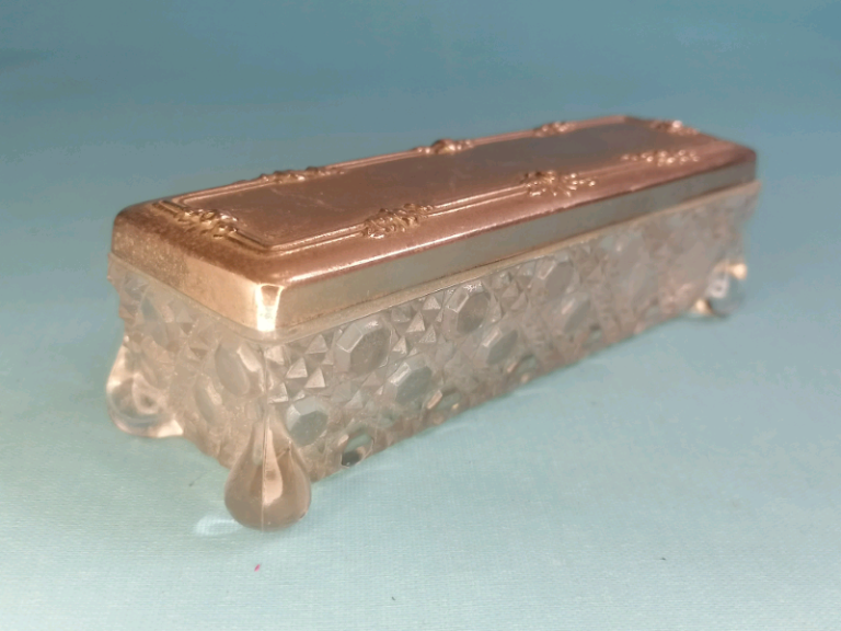 Antique Hobnail cut glass dressing table trinket box with metal lid.